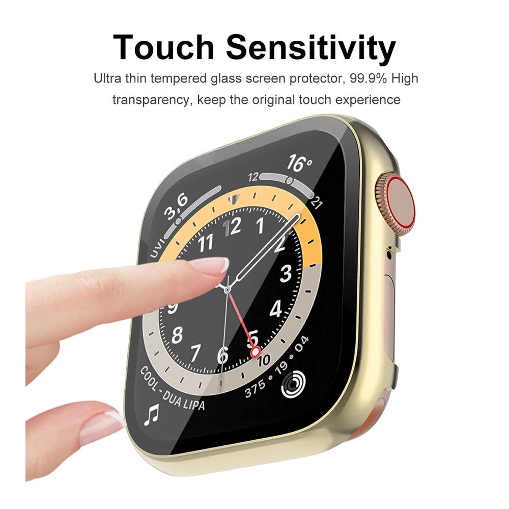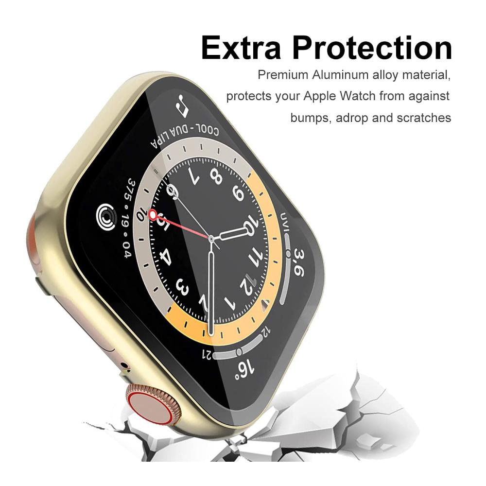 - [Paket beinhaltet]: 1 x Apple Watch Series 6/SE /5/4 44mm 40mm Metall Hülle Mit Panzerglas Displayschutz ; 1 x Nass- / Trockentücher ; 1 x Staubentfernungsaufkleber.