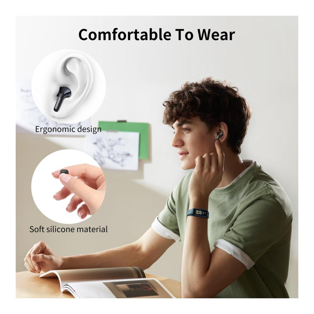 【Bequeme und Akkulaufzeit lang】 Das in Ear Kopfhörer Bluetooth verwendet das Prinzip des ergonomischen Designs, kombiniert mit einer großen Anzahl von Kopfformdaten, um eine optimale Passform und Tragekomfort zu gewährleisten. Leichte Materialien machen das Gesamtgewicht extrem leicht, auch wenn es für lange Zeit getragen wird, ist es nicht einfach, Müdigkeit zu spüren. Die 400mAh Batteriebox stellt sicher, dass Sie sie nicht häufig aufladen müssen.