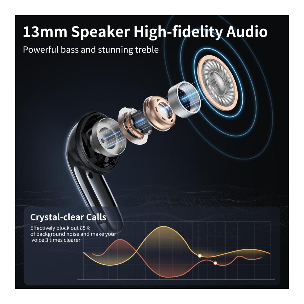 【Ausgezeichnete Klangqualitätsleistung】 Unsere Bluetooth-Ohrhörer sind mit einem 13 Millimeter großen dynamischen Treiber ausgestattet. Dies bedeutet eine größere Klangkammer und Membran, was dazu führt, dass sie tiefere Bässe besser verarbeiten können und klare, lebendige Höhen bieten können. Der große Treiber trägt dazu bei, ein reichhaltigeres und nuanciertes Klangerlebnis zu erzeugen und stellt sicher, sodass du exzellente Klangqualität in der Musik, und bei Gesprächen erleben kannst.