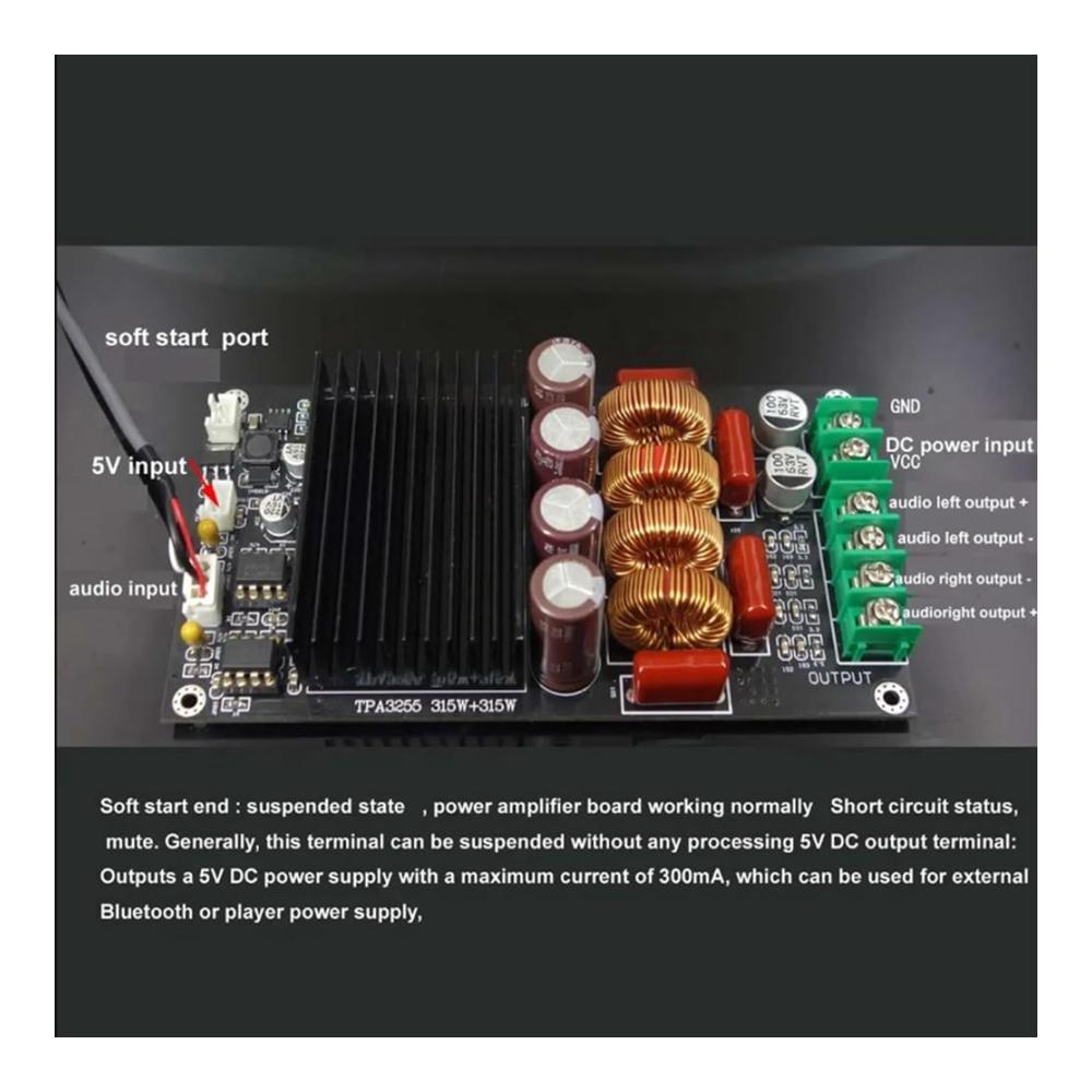 Erleben Sie die Leistung des Sleeve Neue Verbesserte TPA3255 SAMP-100 TPA3255 2X300W 600W Stereo-Hochleistungs-HiFi-Verstärkerplatine der D. Ausgestattet mit einer verlustfreien roten Ringinduktivität und einem Hochstromkondensator bietet dieser Verstärker eine verbesserte Leistung. Der integrierte 5-V-Anschluss dient als Backup für externe Geräte. Hergestellt aus robustem Kunststoff in Schwarz, ist dieses Produkt langlebig und einfach zu bedienen. Lieferumfang: 1 x HiFi-Verstärkerplatine.