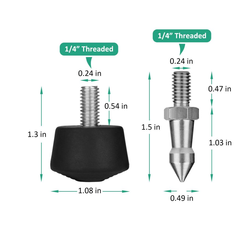 • Breite Anwendbarkeit – Die aus Gummi-Stativfüße und die Edelstahl-Kamera-Spikes als Ersatz passen auf alle Stativ und Einbeinstativ mit einer 1/4&34;-20 Zoll Aufnahme. Ersatz Spitze kompatibel mit Andoer Gitzo Benro Induro Kingjoy Weifeng Stativ Einbeinstativ