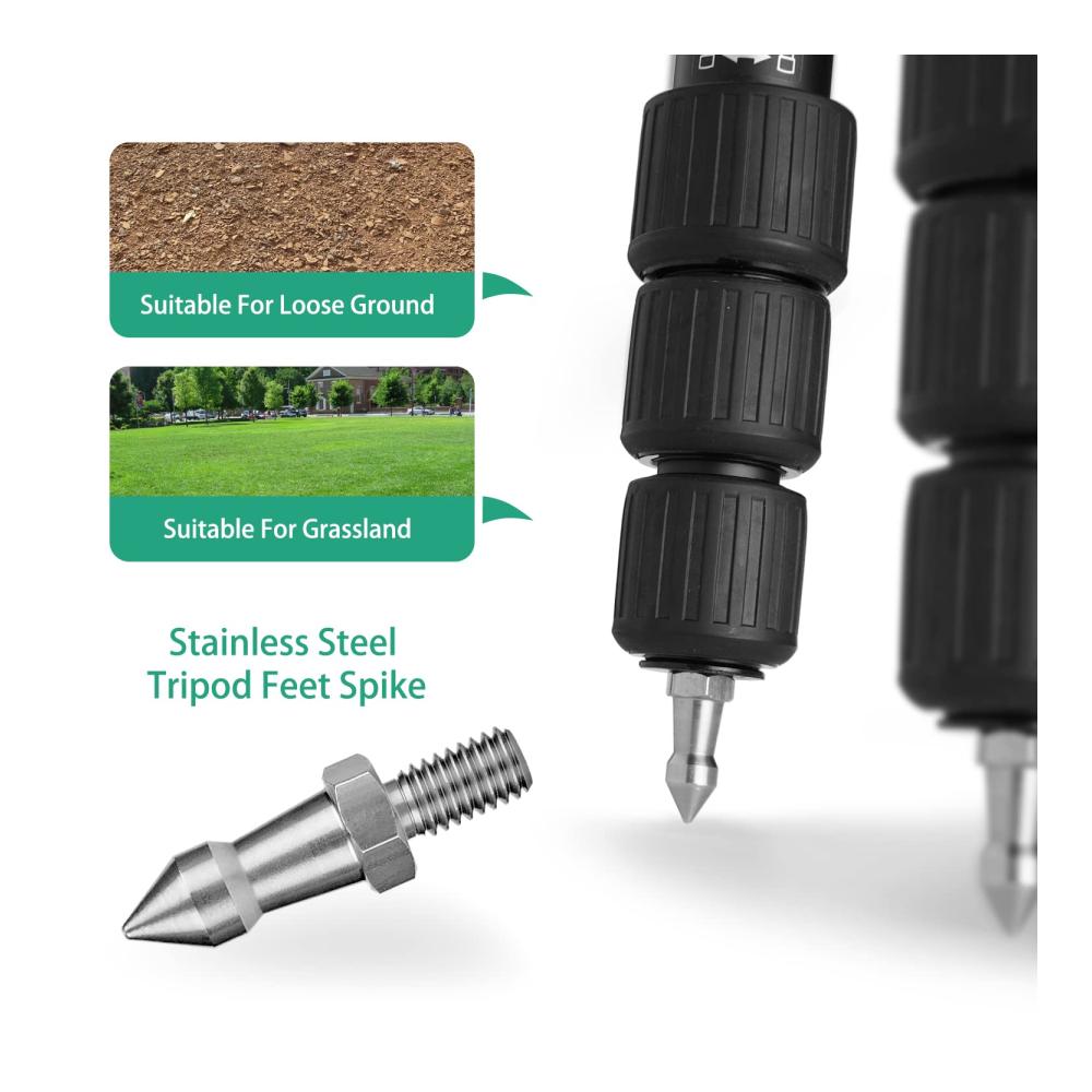 • Mehrzweck – Die Stativ spikes ermöglichen ein tiefes Eingraben des Stativfüße in weiche Oberflächen, ideal, um Ihr Stativ stabil zu halten, wenn Sie auf weicherem, lockerem Untergrund wie Schnee, Sand usw. fotografieren. Die Gummifüße eignen sich für den Einsatz im Freien und in der Ebene Boden und Innen.