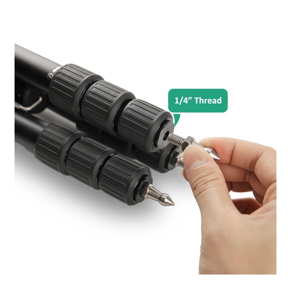 • Einfach Zu Bedienen & Installieren – Keine Ausrüstung erforderlich. Einfach einschrauben und auf Ihrem Stativ verwenden. Es kann schnell ersetzt werden Stativspitze für mehr Sicherheit und Stabilität.