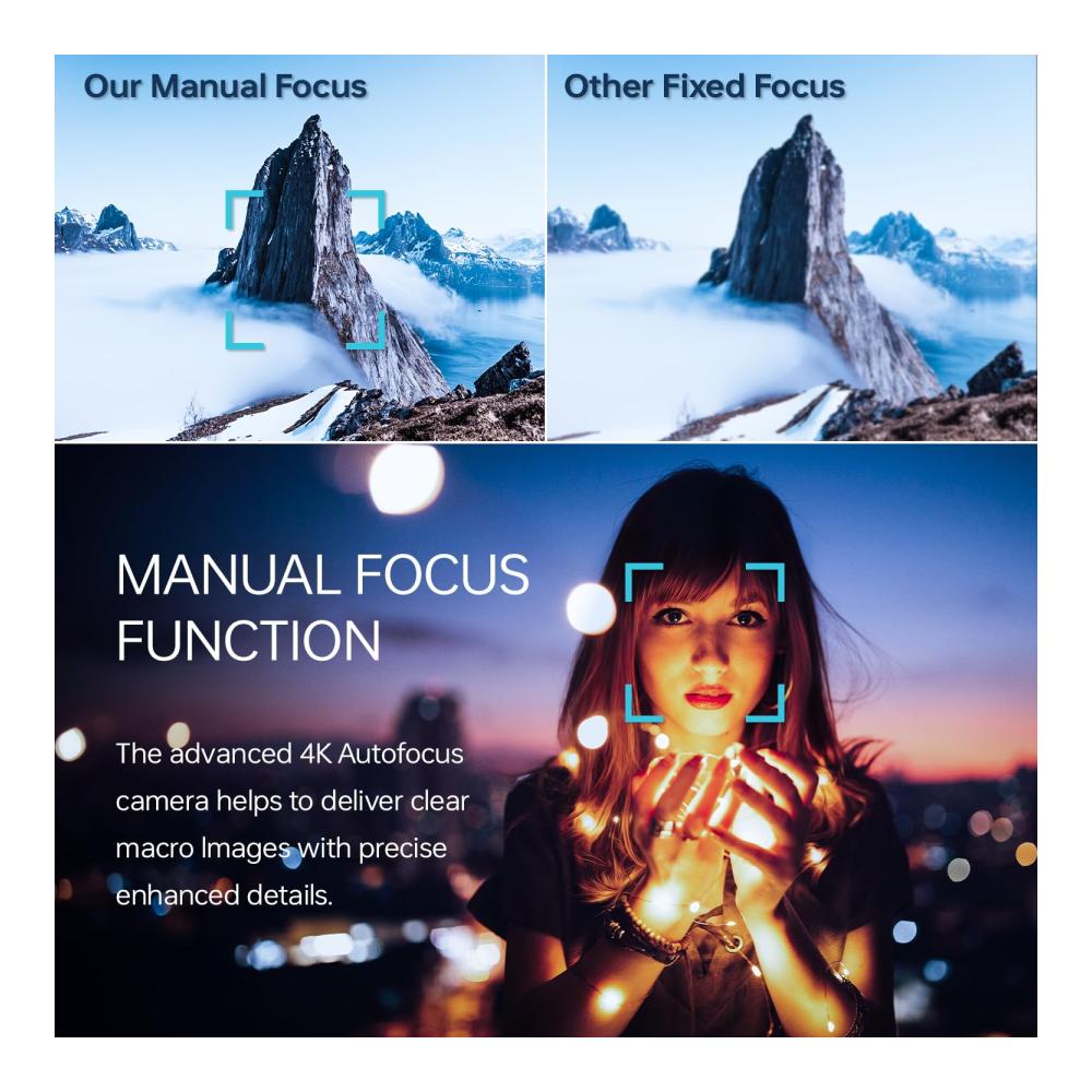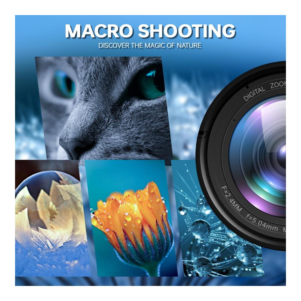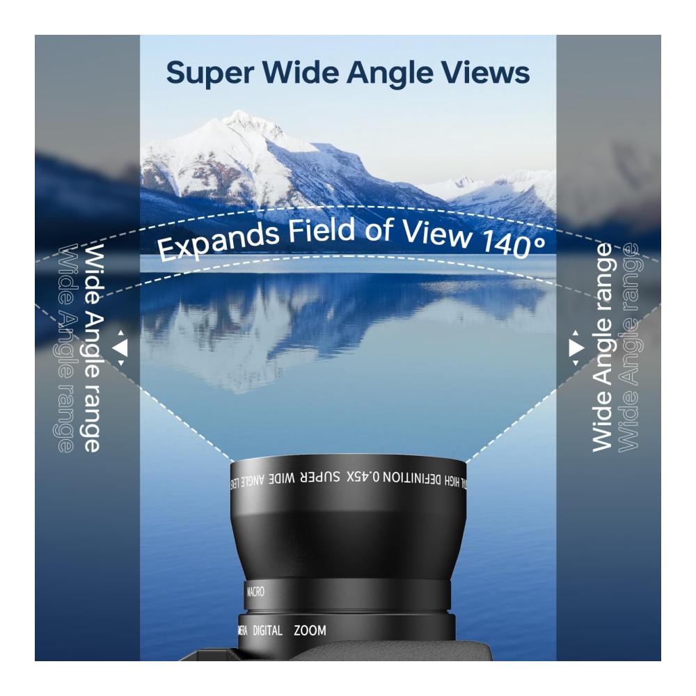 • 📷【Mit Weitwinkelobjektiv & Makroobjektiv】Ausgestattet mit einem abnehmbaren 52-mm-Weitwinkelobjektiv und einem Makroobjektiv, fängt diese 4K-Kamera weite Horizonte und winzige Details mit Leichtigkeit ein. Der manuelle Fokus garantiert scharfe Fotos, während ein Knopf an der Oberseite einen einfachen Wechsel zwischen Foto-, Video- und Zeitraffer-Fotomodus ermöglicht.