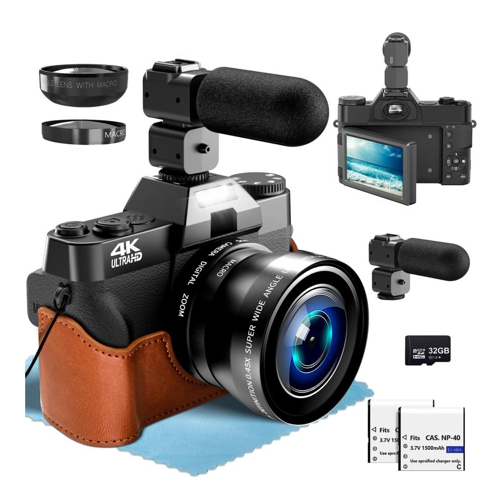 • 📷【4K & 48MP – Ultrahohe Spezifikationen Kamera】Dieser Fotokamera mit 4K-Video und 48MP ausgestattet. Mit 18-fachem Digitalzoom, Videopause, Schleifenaufzeichnung und lautloser Aufnahme ist sie perfekt für Vlogging und mehr. Außerdem verfügt sie über einen Selbstauslöser für die einfache Aufnahme von Fotos. Der aufgerüstete Chip sorgt für hochauflösende und realistische Bilder und ist damit das beste Geschenk für Freunde und Familie.