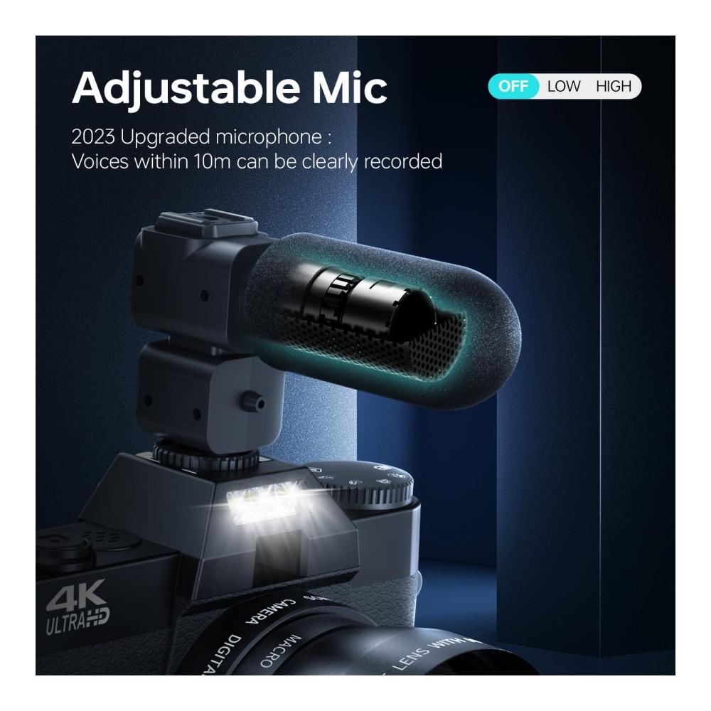 • 📷 【 2023 Aktualisiertes Einstellbares Mikrofon】Das externe neueste Stereomikrofon dieser Vlogging-Kamera kann effektiv Rauschen beseitigen, die Lautstärke und Klarheit von 80% verbessern. Stabiler, klarer und mehr Stereo-Audio als andere Camcorder. Tragbare Kamera ist mit einem Blitz ausgestattet, um klarere Kulturlandschaften bei schlechten Lichtverhältnissen aufzunehmen!