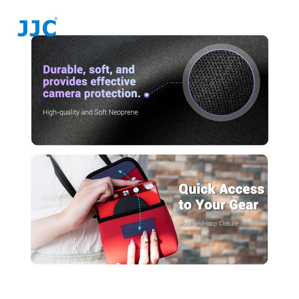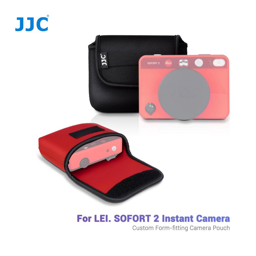 Schützen Sie Ihre Leica Sofort 2 Sofortbildkamera mit der JJC OC-LSF2-Serie Kompaktkameratasche. Das strapazierfähige Neopren-Material bietet zuverlässigen Schutz vor Staub, Stößen und Kratzern. Die weiche, gepolsterte Innenseite bewahrt Ihre Kamera sicher auf. Der Klappverschluss ermöglicht einfachen Zugriff, während die Option für ein Umhängeband Komfort und Sicherheit bietet. Erhältlich in klassischem Schwarz oder Rot – wählen Sie den Stil, der zu Ihnen passt. Die perfekte Lösung für stilvollen Schutz unterwegs.