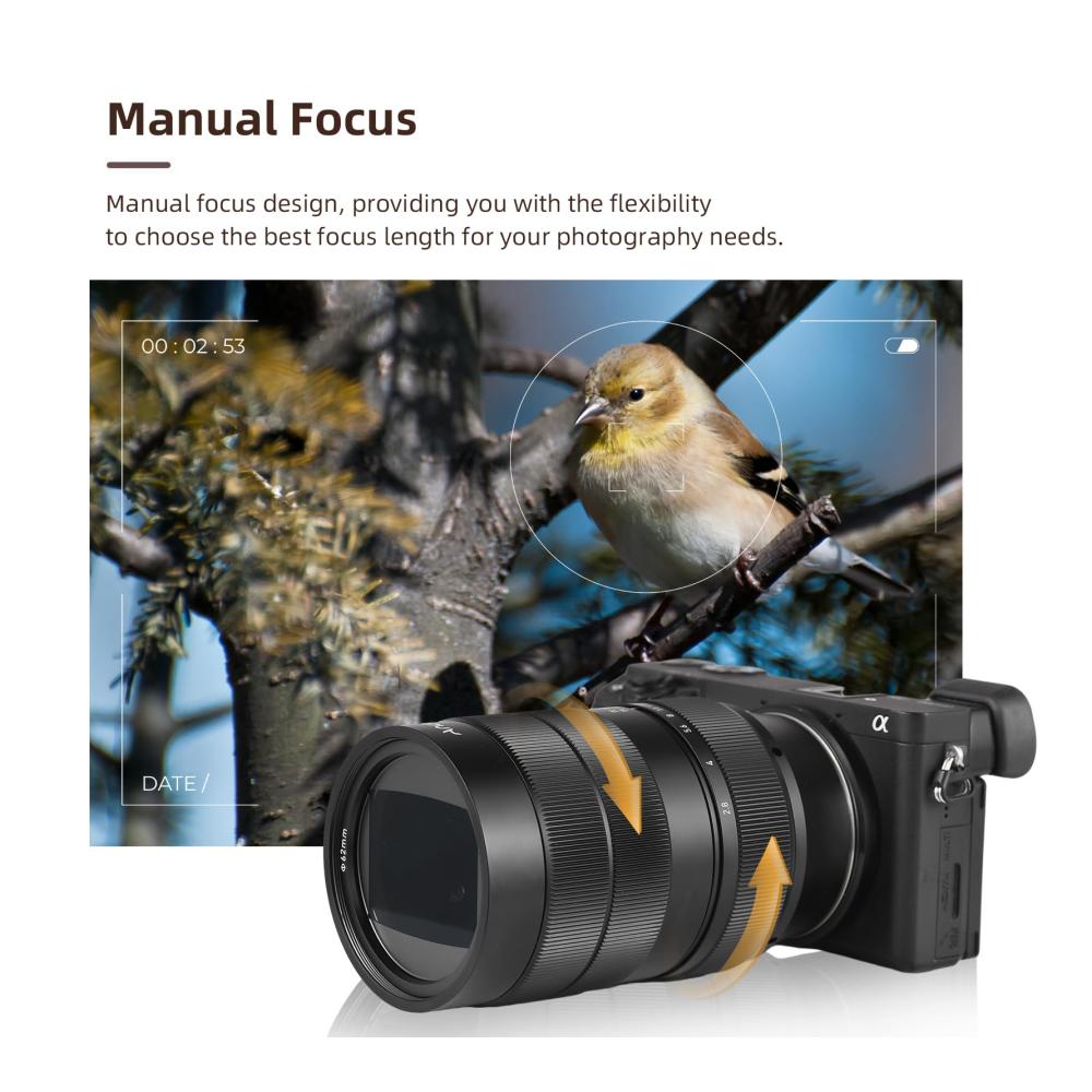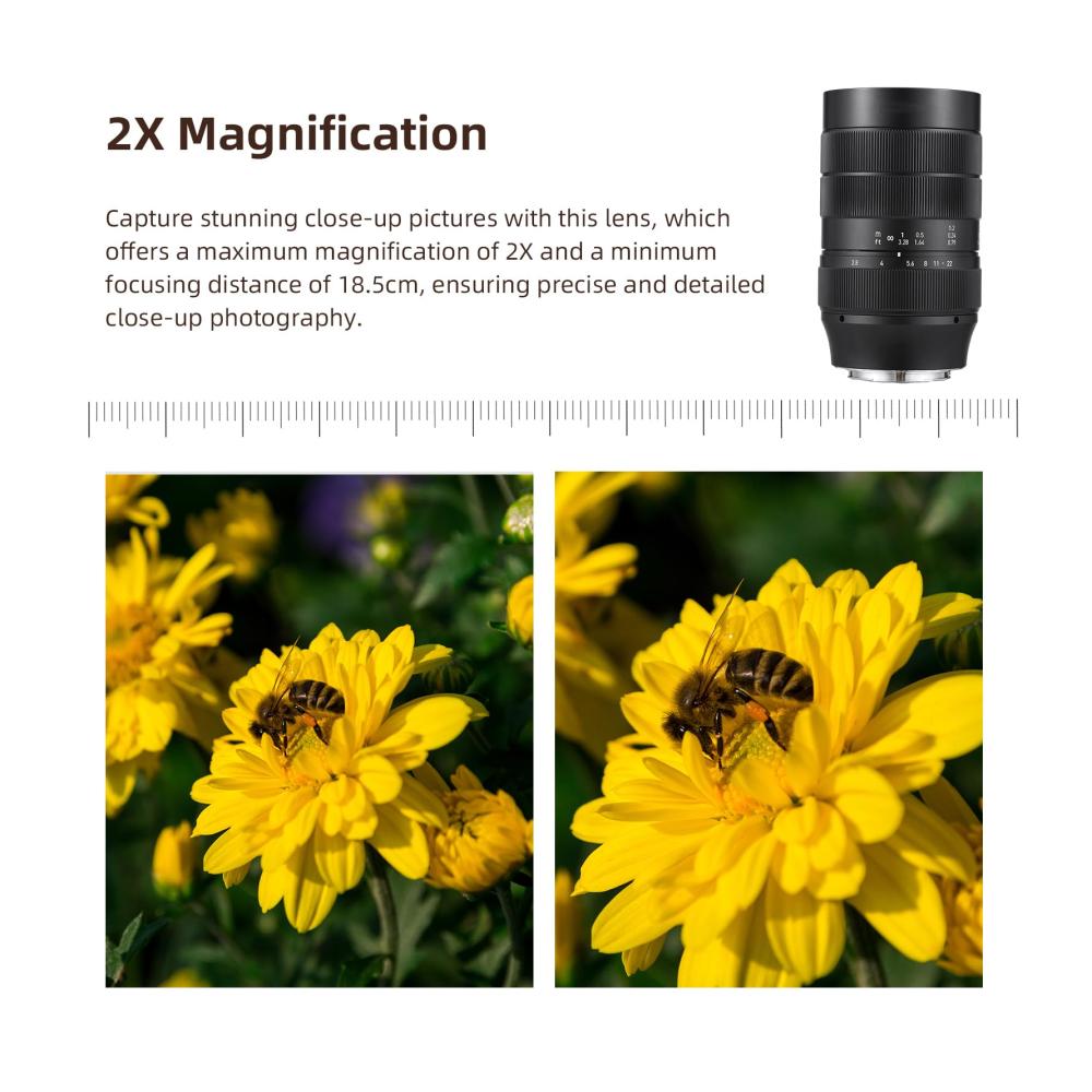 【2-fache Vergrößerung】Erfassen Sie atemberaubende Nahaufnahmen mit diesem Objektiv, das eine maximale Vergrößerung von 2-fach und einen minimalen Fokussierabstand von 18,5 cm bietet und so präzise und detaillierte Nahaufnahmen gewährleistet.