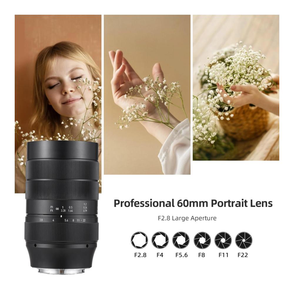 【Professionelle Qualität】 Mit einer Brennweite von 60 mm und einer großen Blende von f2,8 erzeugt dieses Objektiv eine atemberaubende natürliche Hintergrundunschärfe und fängt wunderschöne menschliche Porträts ein.