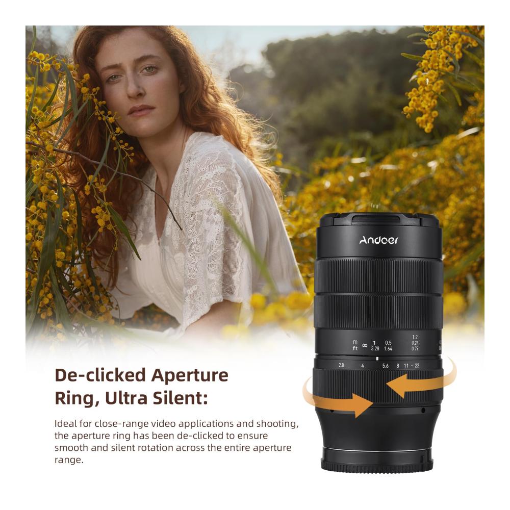 Tauchen Sie ein in die Welt der Fotografie mit dem Andoer 60 mm Kameraobjektiv für Vollformat-Spiegelreflexkameras. Dieses Objektiv zeichnet sich durch umfassende Kompatibilität mit Sony A7/A7II/A7R/A7RII/A7S/A7SII/A6500/A6300 E-Mount spiegellosen Kameras aus. Die professionelle Qualität des Objektivs zeigt sich in einer beeindruckenden Brennweite von 60 mm und einer großen Blende von f2,8, die natürliche Hintergrundunschärfe und wunderschöne Porträts ermöglicht. Die Linse mit geringer Dispersion, bestehend aus 10 Elementen in 7 Gruppen, minimiert effektiv Blendung, Geisterbilder und Verzerrungen. Vielseitig einsetzbar für Landschafts-, Architektur-, Produkt-, Sport-, Porträt- und Hochzeitsfotografie. Mit 2-facher Vergrößerung eröffnet das Objektiv die Möglichkeit für präzise Nahaufnahmen mit einem minimalen Fokussierabstand von 18,5 cm. Die Spezifikationen, darunter eine Filtergröße von 62 mm und eine maximale Blende von F2,8, garantieren professionelle Ergebnisse. Erweitern Sie Ihre fotografischen Fähigkeiten mit diesem Andoer Objektiv