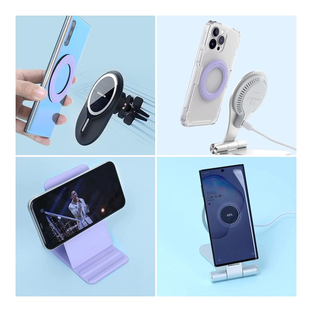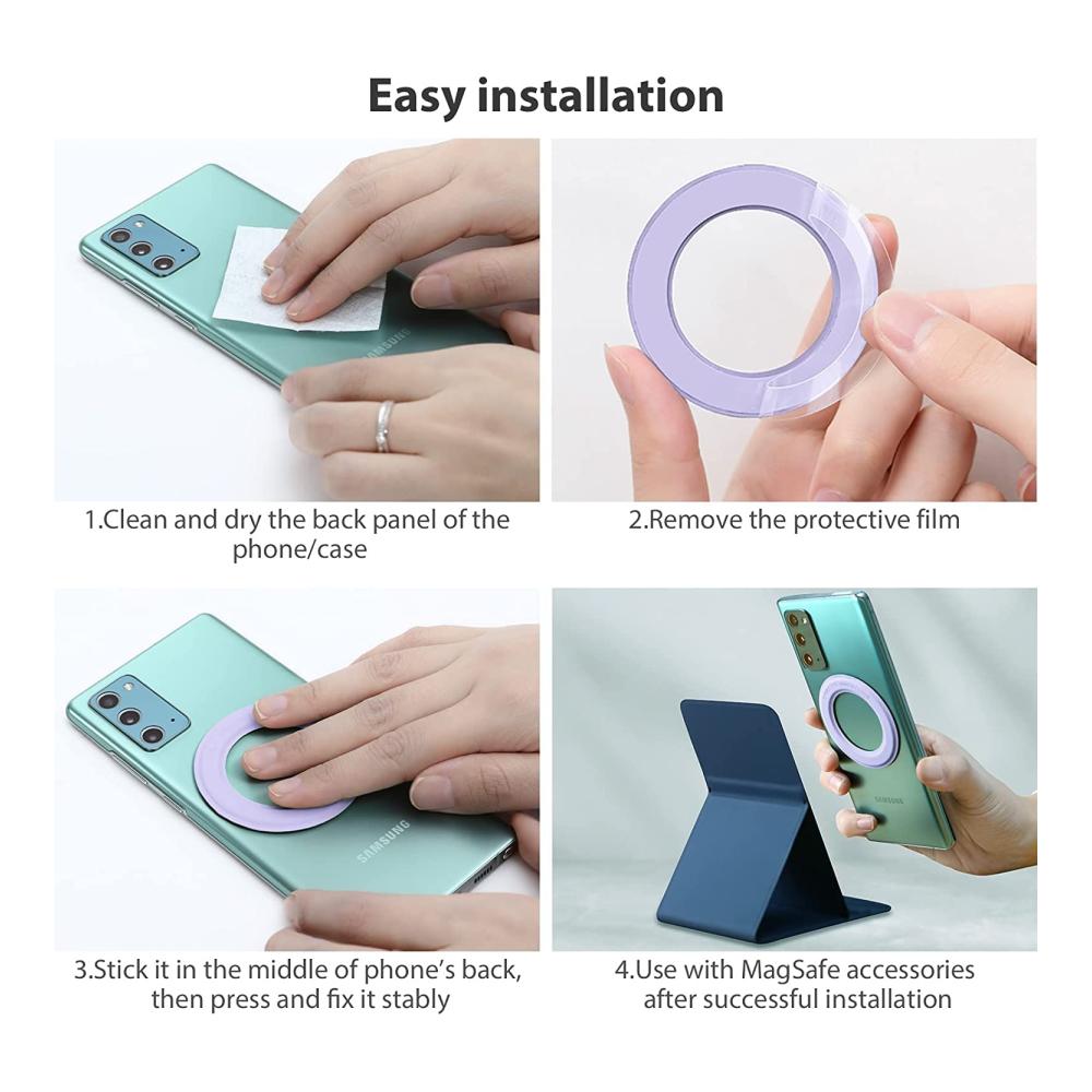 Tauchen Sie ein in die Welt des Nillkin-Magnetring: 2er Pack Mag-Safe für ultimativen Schutz! Geeignet für verschiedene Materialschutzhüllen und Handy-Rückseiten. Lassen Sie Ihr Telefon mühelos die MagSafe-Magnetfunktion nutzen und erleben Sie kabelloses Laden mit dem MagSafe-Ladegerät und Zubehör. Die violette Farbe verleiht einen Hauch von Eleganz. Das Silikon- und Kunstledermaterial sorgt für eine angenehme Haptik. Der Ring bietet eine nicht-induktive Passform für Hüllen bis zu 2 mm Dicke. Die starke Magnetkraft und der importierte 3M-Kleber gewährleisten eine stabile Adsorption ohne Rückstände. Genießen Sie die Leichtigkeit, Kratzfestigkeit und Verschleißfestigkeit des Rings. Die einfache Installation erfordert kein Werkzeug – reißen Sie einfach das Trennpapier ab und befestigen Sie den Ring in der Mitte Ihres Telefons oder der Schutzhülle. Erleben Sie Standard-Magie jetzt selbst