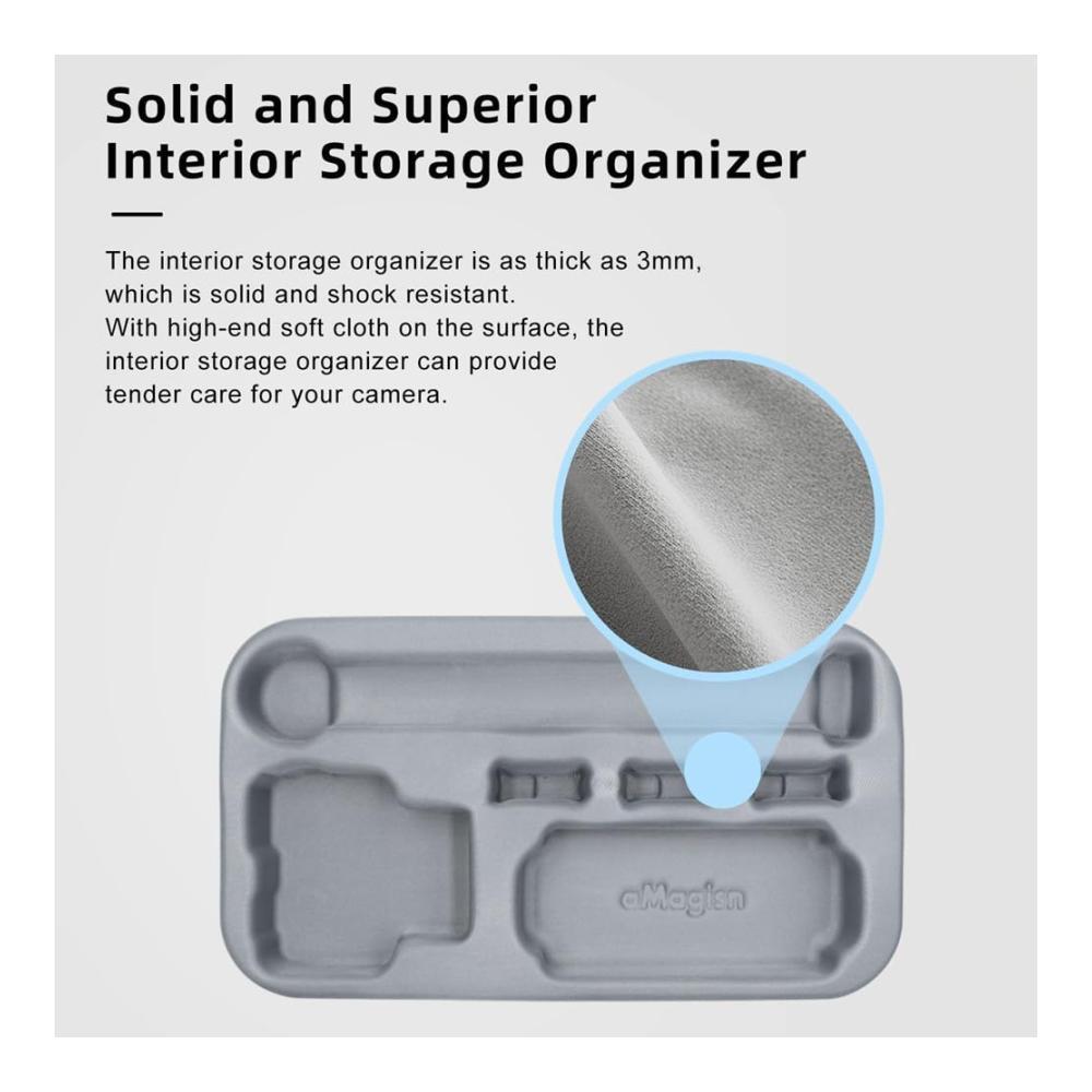 Abnehmbarer Innenaufbewahrungs-Organizer schafft mehr Stauraum, kann in der Lage sein, verschiedene Arten von Action-Kamera-Zubehör nach dem Entfernen der Aufbewahrungsrille zu verstauen.