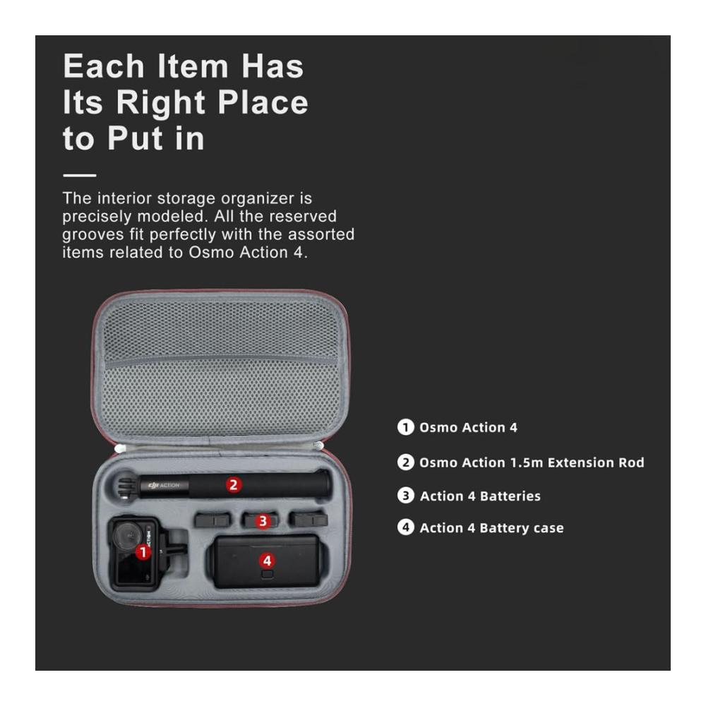 Individuelles Design: Kameraschutz-Aufbewahrungstasche für DJI Osmo Action 4/3 und Zubehör, schützt die Gegenstände vor Quetschen und Beschädigungen.