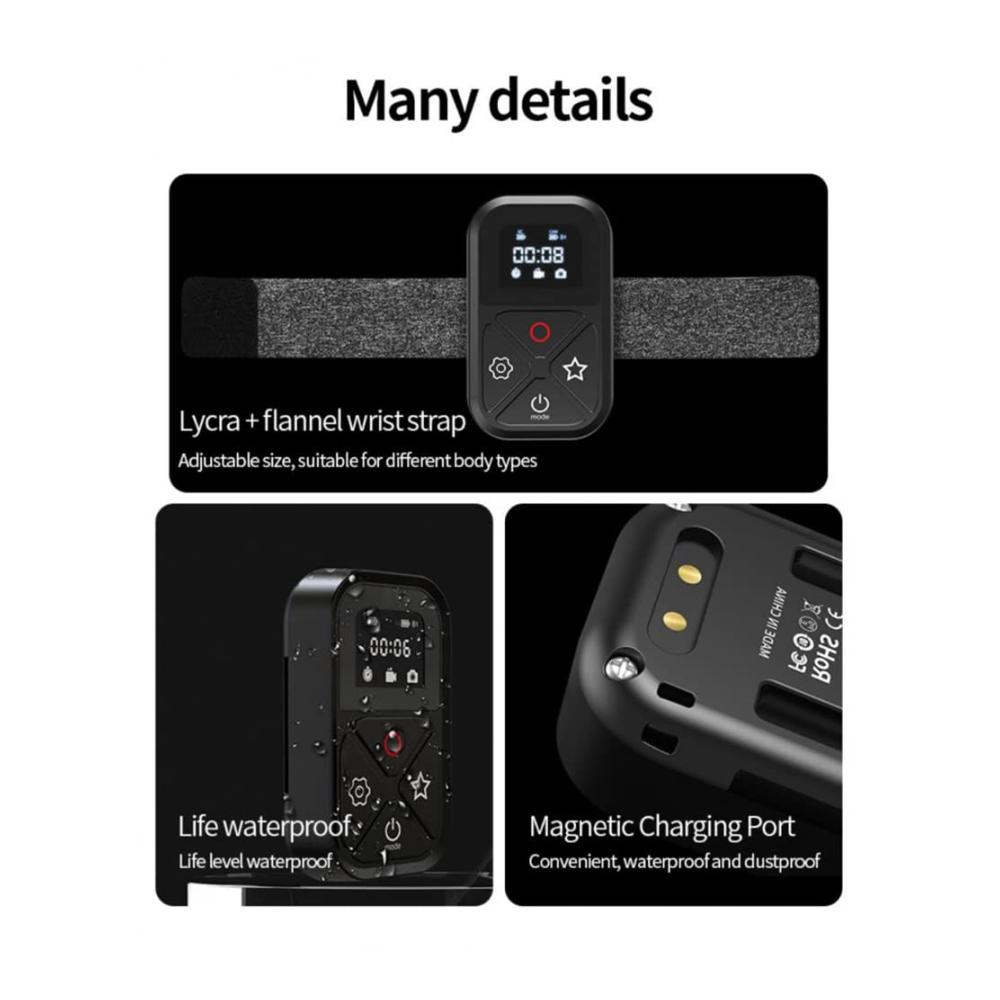 Tauchen Sie ein in die Welt der Kontrolle mit der Dawafit Bluetooth-Fernbedienung für Hero 10 9 8 Max! Perfekt für Hero 9, Hero 8, Max oder Smartphones. Vier Tasten ermöglichen einfache Modusumschaltung, Ein-/Aus-Steuerung, Schnellmodus-Einstellung und Kamera-Parameter-Einstellung. Genießen Sie eine ultra-lange Standby-Zeit von 2,5 Stunden Ladezeit für 10 Stunden Betriebszeit. Steuern Sie bis zu 5 GoPros gleichzeitig mit einem Steuerabstand von bis zu 80 m ohne Signalstörungen. Die verbesserte Handschlaufe sorgt für zusätzlichen Komfort. Produktmodell: GP–T10, Produktgewicht: 35,87 g. Nutzen Sie die verbleibende Leistungsanzeige sowohl am Hauptgerät als auch an der Fernbedienung. Inklusive USB-Kabel und englischem Handbuch.