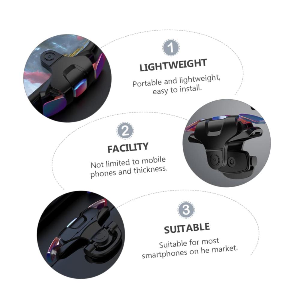 Paket enthält 3 x Paar TelefonspielauslöserFunktionen -Farbe: schwarzer Telefongriff-Material: Kunststoff praktischer Auslöser für mobile Gamecontroller-Größe: 5,50 x 5,50 x 3,00 cm/2,16 x 2,16 x 1 Telefon Spielzubehör.– Die Installationsposition kann auch unbegrenzt angepasst und verschoben werden.– schönes Aussehen, einfach zu installieren und zu bedienen.– einfach auf Ihrem Telefon anzuwenden, Tasten helfen Ihnen, Ihr Spiel zu genießen, besserer Game-Controller-Auslöser.– verstellbare Schutzschnalle, universelles Mobiltelefon, rutschfestes Silikon, Auslöser für mobile Game-Controller mit Legierungstasten.– hergestellt aus hochwertigem Material, das seine Haltbarkeit und Praktikabilität als mobiler Gamecontroller gewährleistet.Warenbeschreibung Telefonauslöser für Spiele Wenn Sie auf der Suche nach einem professionellen und langlebigen Telefonspielauslöser sind, dann können Sie sich diesen Telefonspielauslöser ansehen, der aus hochwertigem Material gefertigt und seine Haltbarkeit und Praktikabilität gewährleistet. Praktisches Handyspiel Es eines für Sie
