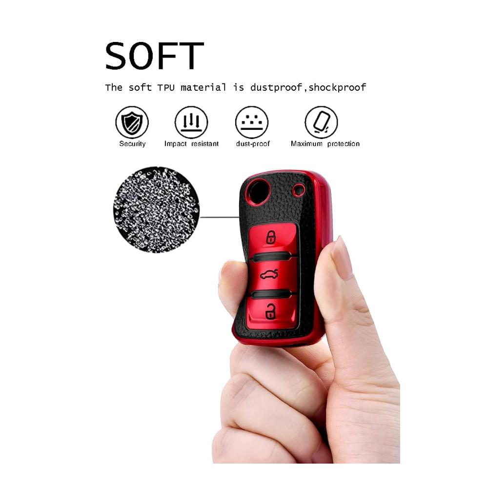 Eigenschaften:Ein perfektes Schlüsseletui, das Ihre Schlüssel vor Kratzern, Rissen, Abnutzung, Schmutz, Regen oder Wasser schützen kann. Material der Abdeckung: TPU-Material.Farbe:Rot.Kompatibilität: Kompatibel für VW: Up – Caddy – Jetta – Bora – Beetle – EOS – Golf 4 / 5 / 6 – Polo – Passat 3BG / 3B – Scirocco – Touran- Touareg – T5 , Skoda: Fabia – Octavia – Superb – Roomster – Citigo – Yeti , Seat: Altea – Alhambra – Leon – Ibiza – Mii. (Bitte beachte die Form Deines Schlüssels).Packliste:1 x Autoschlüssel-Hülle (Schlüssel nicht im Lieferumfang enthalten). 1 x Schaffell-Schlüsselanhänger.