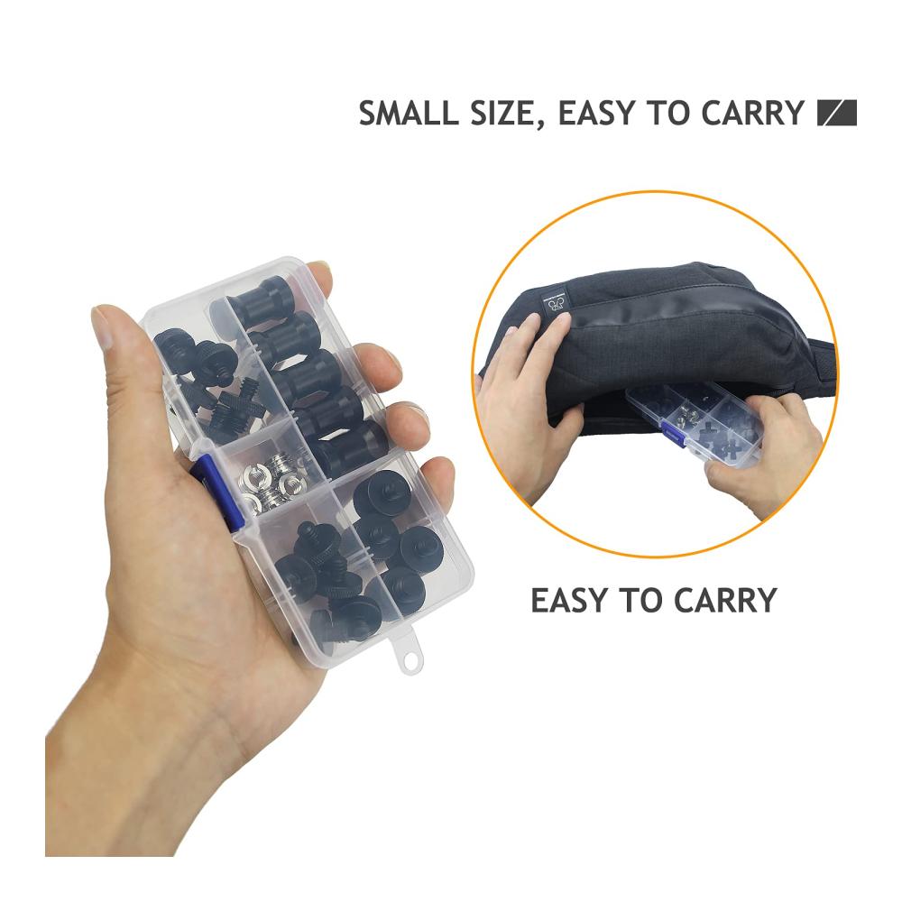 Einfach zu Tragen – Mit einer Organizer-Box. Sie sind leicht und einfach zu transportieren und können sogar als Backup für das Gegenstück in Ihren Rigs dienen. Austausch von Kameraschrauben, weit verbreitet beim Zusammenbau von zwei Fotografische Ausrüstung.