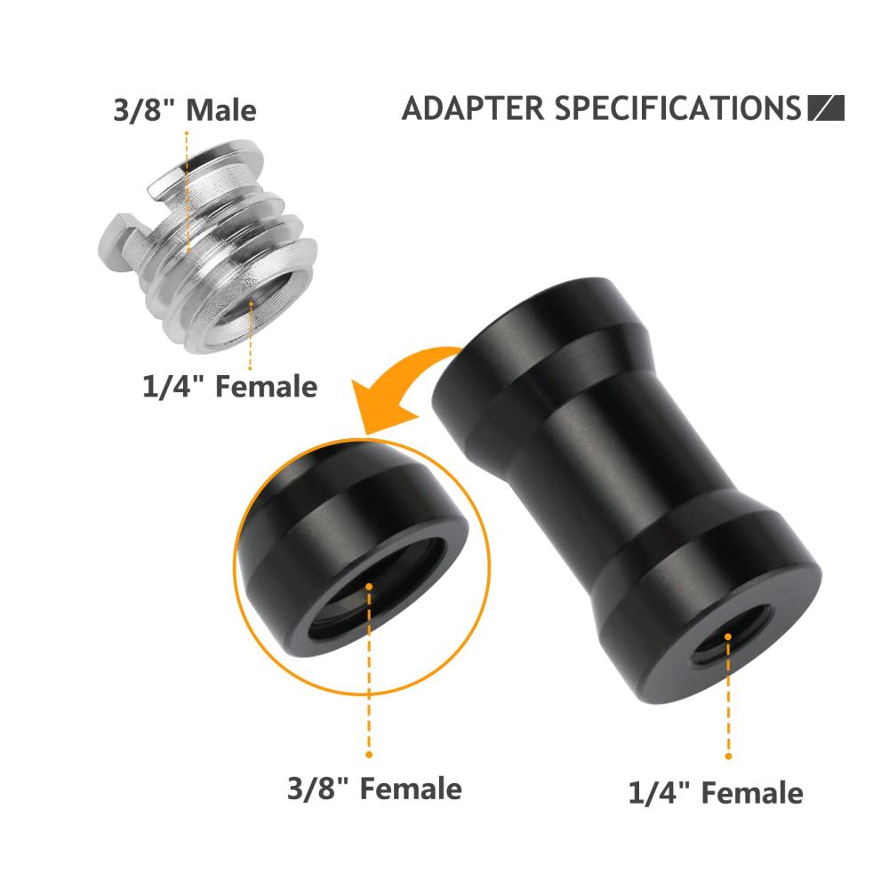Muti Funktion – Der Kamera Schraub Adapter kann zwei Fotoausrüstungsgeräte zusammenfügen. Es kann an einer Reihe verschiedener Fotozubehörteile befestigt werden. Wie DSLR-Kamera, Stativ, Einbeinstativ, Kugelkopf, Blitzlichtständer, Schulter-Rig-Kamerazubehör.