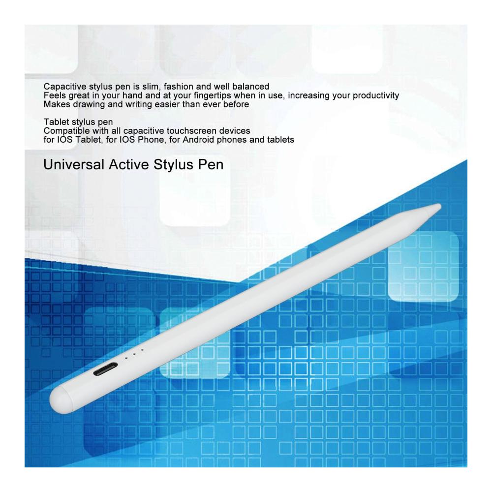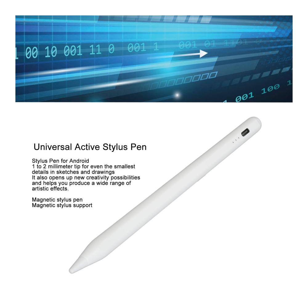 Spezifikation:Artikeltyp: Universal Active Stylus PenMaterial: AluminiumlegierungFarbe: WeißBatterietyp: Eingebaute 140 mAh Lithiumbatterie (Lieferung mit eingebauter Batterie)Eingang: 5V 0,2AAnwendungsbereich: Geeignet für alle kapazitiven Bildschirmgeräte mit Touch Funktion; Kompatibel für iOS, für Telefone und -Tablets.Anwendung:Boot kann verwendet werden, siehe detaillierte AnweisungenPackliste:1 x Stylus (wird mit eingebautem Akku geliefert)1 x Stifthut1 x USB Ladekabel1 x Bedienungsanleitung