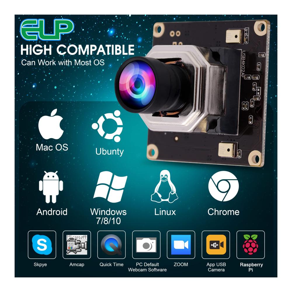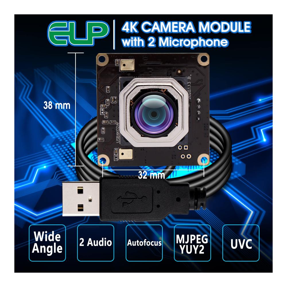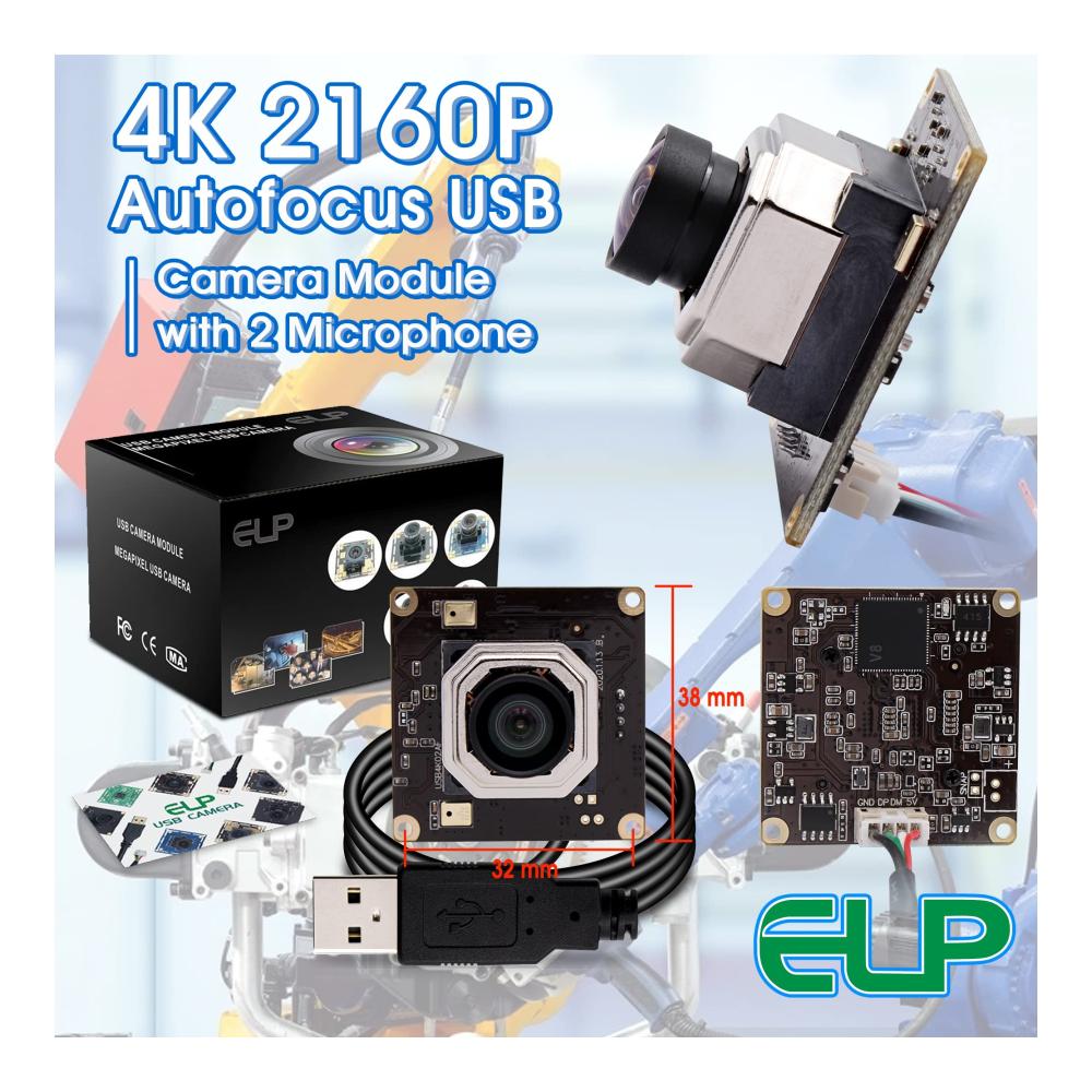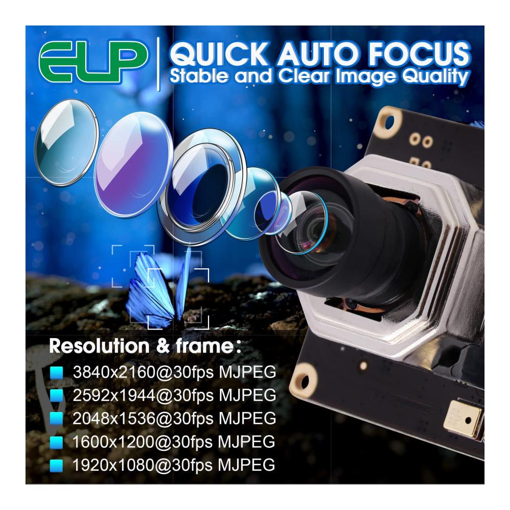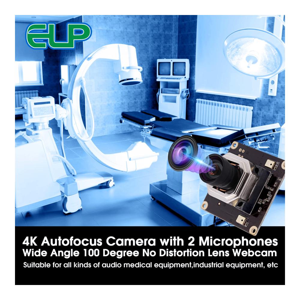 【Weitwinkel 100 Grad Objektiv ohne Verzerrung, Autofokus USB Kamera】: Autofokus USB Kameramodul mit 100Grad Objektiv ohne Verzerrung, Weitwinkel USB Kameras können die meisten Aufnahme und Videoanforderungen erfüllen, Hochauflösende 4K Autofokus Kamera USB mit IMX415 Sensor, Ausgestattet mit 1 Meter USB Kabel, OTG Unterstützung optional. 【FULL HD 4K 2160P Autofocus USB WEBCAM】 Die Streaming Kamera bietet unglaublich scharfes 4K HD,um kristallklare Bilder aufzunehmen und Videos mit 2160/30 fps aufzunehmen. Wird für alle Arten von Maschinen wie unten verwendet: Maschinenausrüstung, All-in-One Maschine, POS Ausrüstung,STB,Smart Box TV BOX, Beratungsplayer,LED-Display,Verkaufsautomat,Safe Notebook,Video-Türsprechanlage, MID,Tablet extern,Bewerter,medizinische Geräte,Strafverfolgung vor Ort usw. 【Hochgeschwindigkeits USB2.0 Schnittstelle Autofokus Kameramodul:】 Hochwertiger IMX415-Bildsensor für qualitativ hochwertige Bilder,maximale Auflösung: 3840 * 2160p,hohe Bildrate 2160p bei 30 fps,Komprimierungsformat: MJPEG/YUV2 (YUYV),Weißabgleichsfunktion:ausgezeichnet Innen- und Außeneffekte, lebendige Farben. 【Autofokus Kameramodul im MJPEG/YUY2 Komprimierungsformat:】 4K Autofokus USB Kameramodul mit MJPEG/YUY2 Komprimierungsformat hilft,mehr Speicherplatz zu sparen,Streaming mit geringerer Nachfrage auf Ihrem Computer sorgt für schnelleres und reibungsloseres Hochladen von Videos. 2160P HD hochauflösender Weitwinkel 100 Degree No Distortion Objektiv Autofokus USB Kamera, breite Anwendung für die meisten Projekte. 【Plug and Play und UVC kompatibles 4K Autofokus Kameramodul:】4K Autofokus Kameramodul mit UVC kompatibel für die Verwendung in Betriebssystemen: Windows,Linux,Android,Mac usw. Betriebssystemanforderung: Win8 oder höher, Linux mit UVC (über Linux-2.6. 26), MAC-OS X 10.4.8 oder höher, Android 4.0 oder höher mit UVC. Erleben Sie die beeindruckende Leistung unserer Sucherlupen 4K USB Kamera. Mit Autofokus und Doppelmikrofonen bietet sie gestochen scharfe Bilder und klaren Ton. Das Weitwinkelobjektiv mit 100 Grad ohne Verzerrung erfüllt alle Aufnahmeanforderungen. Dank des IMX415 Sensors und Plug & Play-Funktion ist sie ideal für Windows, Android und Mac geeignet. Die UVC Unterstützung sorgt für eine reibungslose Nutzung.