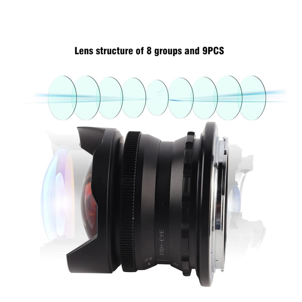 • [Verbesserte Bildgebung] 7,5 mm F2,8 Fischaugenobjektiv mit 8 Gruppen und 9 teiligem Aufbau für optimale Bildqualität.