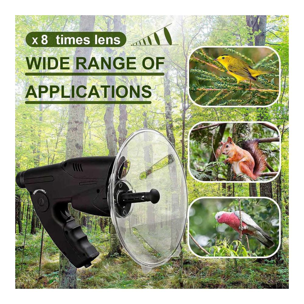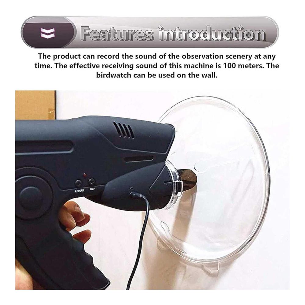 Wir stellen Ihnen unser Parabolmikrofon-Abhörgerät vor – das ultimative Werkzeug für die Aufnahme hochwertiger Audiodaten aus der Ferne.Mit seinem fortschrittlichen parabolischen Design fokussiert dieses Gerät Schallwellen, sodass Sie selbst die leisesten Geräusche mit außergewöhnlicher Klarheit erfassen können. Dank seiner großen Reichweite von bis zu 90 Metern eignet es sich perfekt für die Tierbeobachtung, Überwachung und Ereignisaufzeichnung.Das Gerät ist einfach zu bedienen, leicht und tragbar, sodass es sowohl für den Innen- als auch für den Außenbereich geeignet ist. Egal, ob Sie Journalist, Vogelbeobachter oder Sportbegeisterter sind, unser Parabolmikrofon-Abhörgerät ist der perfekte Begleiter für alle Ihre Audioaufzeichnungsanforderungen.Bestellen Sie jetzt und erleben Sie die Kraft außergewöhnlicher Audioaufnahmen!SpezifikationTyp: 8x Vogelbeobachter-TeleskopModell: Beobachtungsgerät zur VogelaufzeichnungMaterial: ABS optische GlaslinseKopfhörergröße: 19 x 16 cm (7,48 x 6,3 Zoll)Hostgröße: 27 x 21 x 19 cm (10,63 x 8,27 x 7,48 Zoll)Teleskop-Spezifikationen: 8-fach fokussierendes TeleskopStromversorgung: 1 x 9-V-Batterie (nicht im Lieferumfang enthalten).Auflösung: 166/1000 MeterSichtfeld: 7,5°Genaue gerichtete Hörentfernung 100 Meter (300 Fuß) in ruhiger LageFunktion: Aufnahme, Wiedergabe, Transkription, Energieverbrauch, Stromversorgung, GeräuschisolierungAnwendung: Beobachten und studieren Sie Vögel und andere WildtiereLieferinhalt1 x Parabolmikrofon Bionic Ear für Range Listening Device1 x Kopfhörer1 x Englisches Handbuch