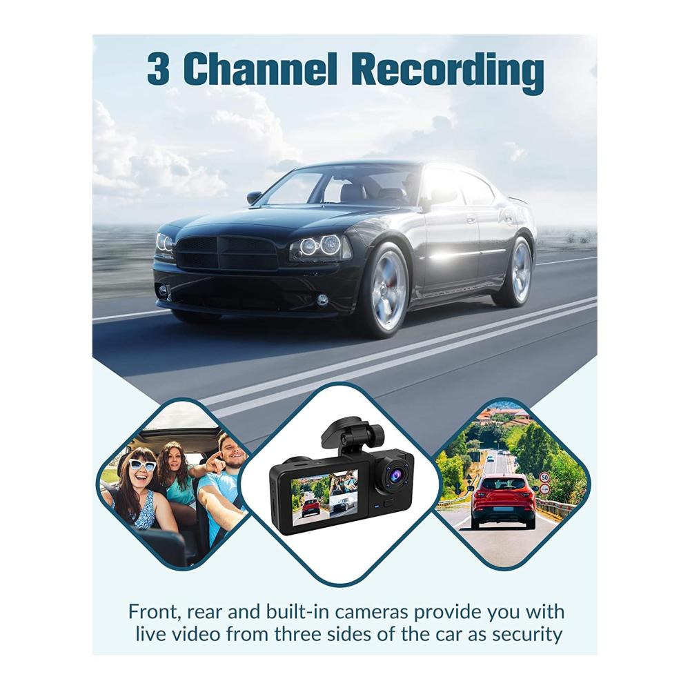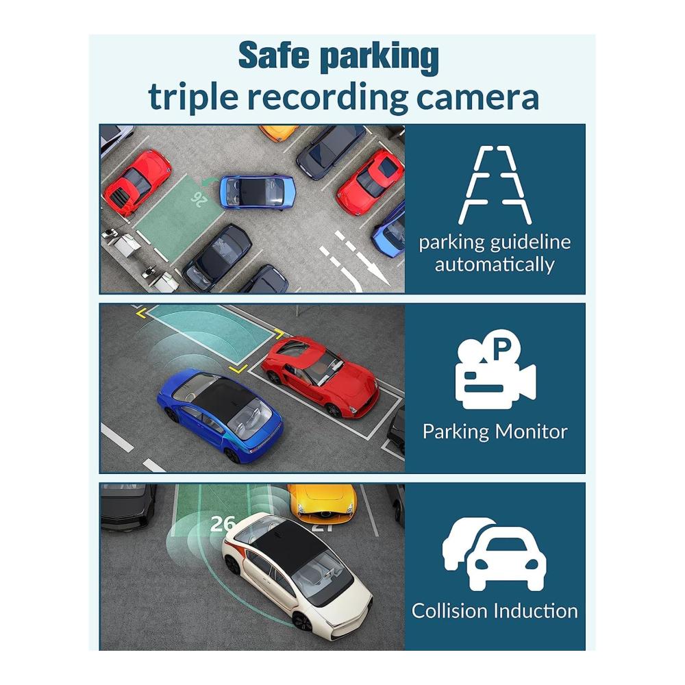 3 Linsen Rundumüberwachung: 3 Linsen Design, das die Vorder-, Rückseite und das Innere des Autos abdeckt, eine Rundumüberwachung bietet, Ihre Fahrsicherheit schützt, das Kabel verlängert, bis zu 6 m, um den Installationsanforderungen verschiedener Autos gerecht zu werden, einfacher zu gehen.