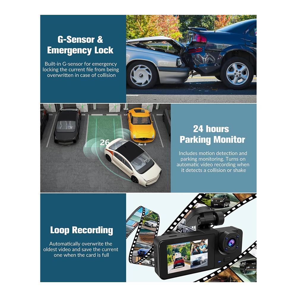 High Definition Videoaufzeichnung: Die High Definition Dashcam liefert klare, detaillierte Fahraufzeichnungen, um sicherzustellen, dass Sie keinen wichtigen Moment verpassen, und das große Weitwinkelobjektiv erfasst mehr Inhalte.