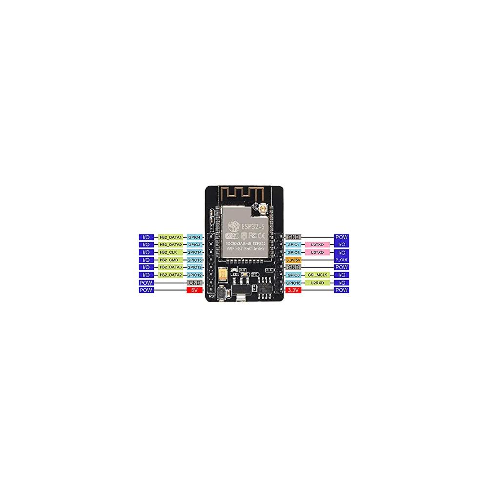 Bantopgong Material:PC MetallFarbe:SchwarzVerpackungsinhalt:4 x ESP32-CAM-Modul4 x Kamera-Modul OV2640Nur der oben genannte Paketinhalt, andere Produkte sind nicht enthalten.Hinweis: Wegen der Lichtstrahlung und Bildschirme könnte der Farbeton in den Fotos sowie des tatsächlichen Produkts etwas unterschiedlich sein. Der erlaubte Messfehler ist /- 1-3 cm.
