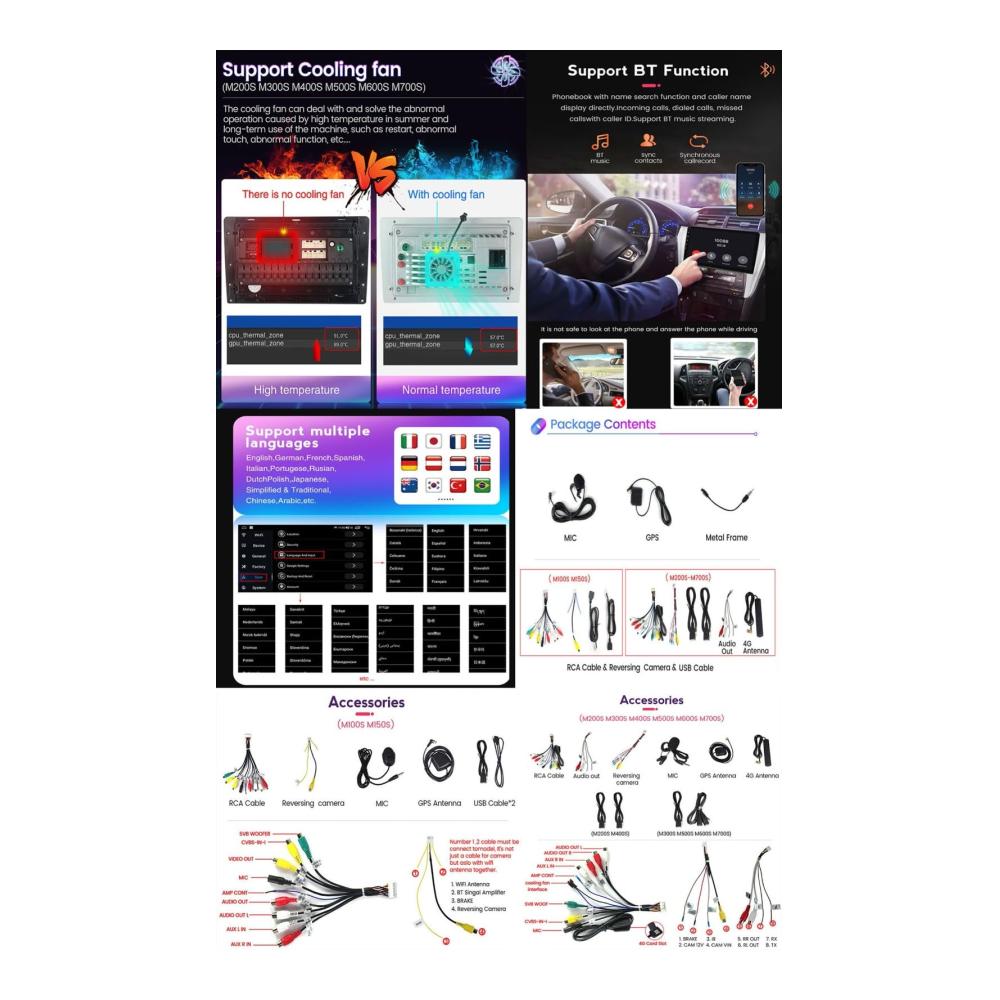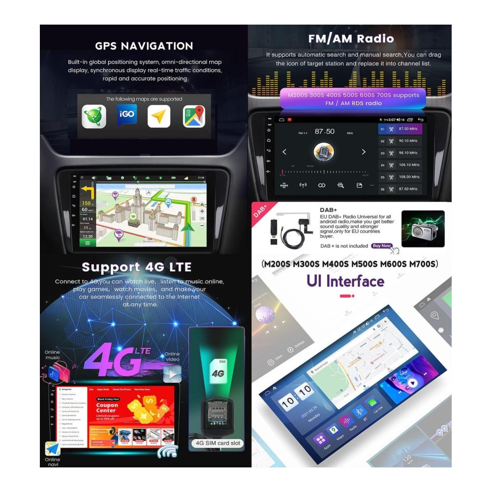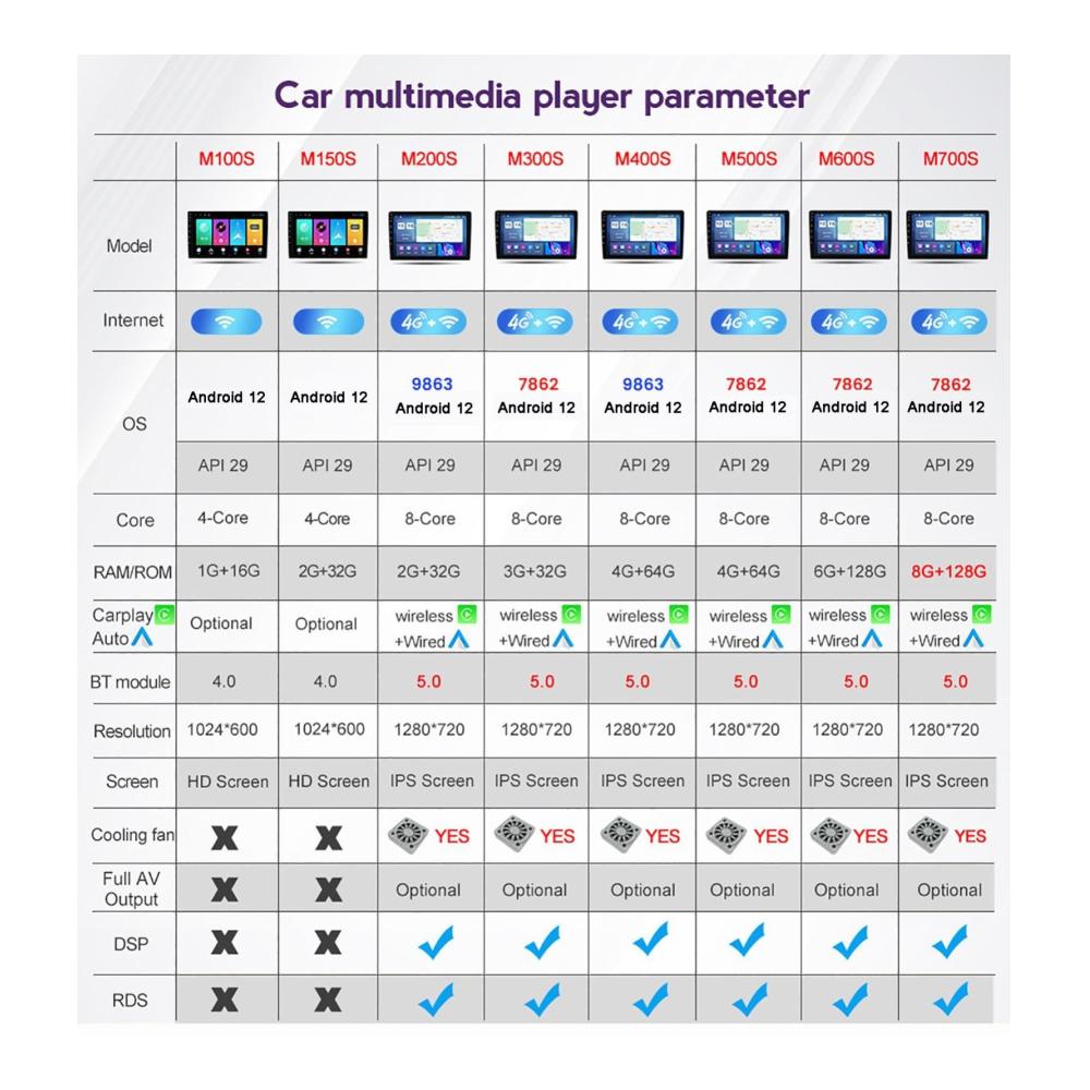 Android-Autoradio: Android 12 Efficient 4-Core: M100S, M150S, nur WLAN. Android 12.0-Geschwindigkeit 8-Kern: M200S, M300S, M400S, M500S, M600S, M700S integriert – nur in Carplay 8-Kern und Android Auto, mit 4G 5G- und WiFi-Unterstützung.