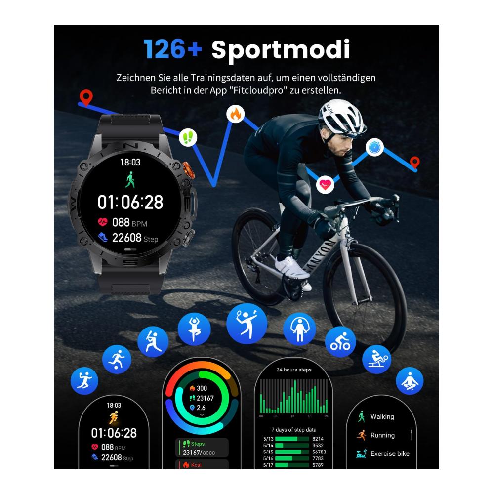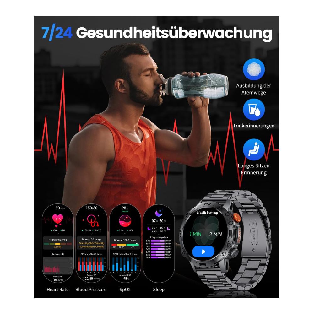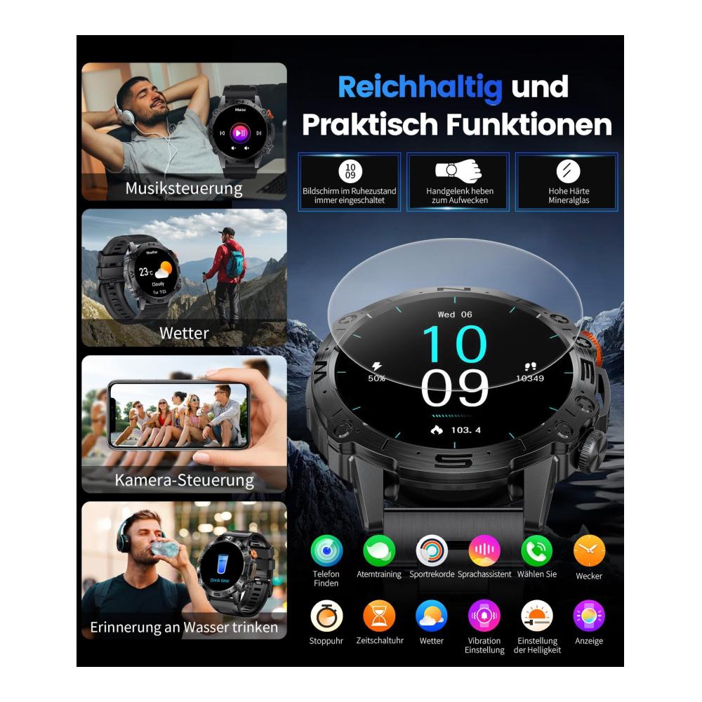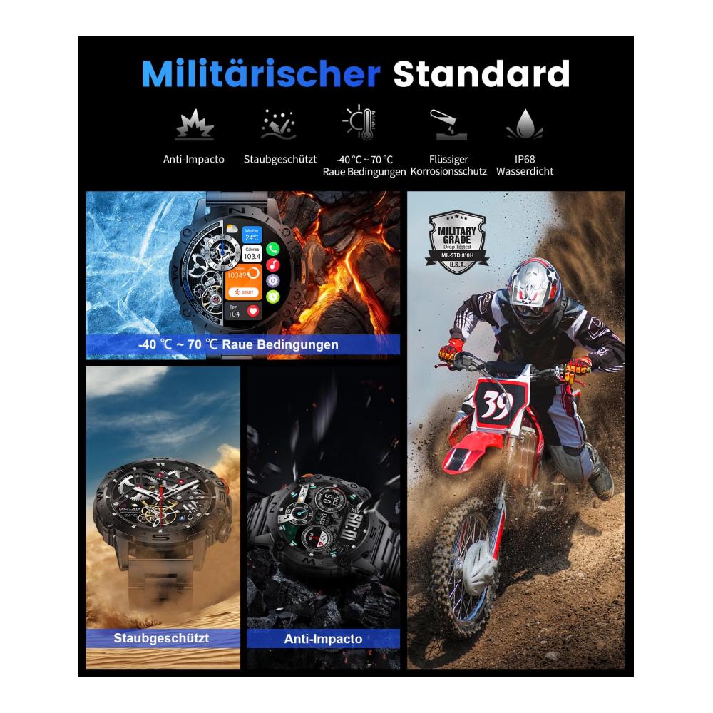 Entdecken Sie die Vielseitigkeit der ESFOE Militär Smartwatch für Herren