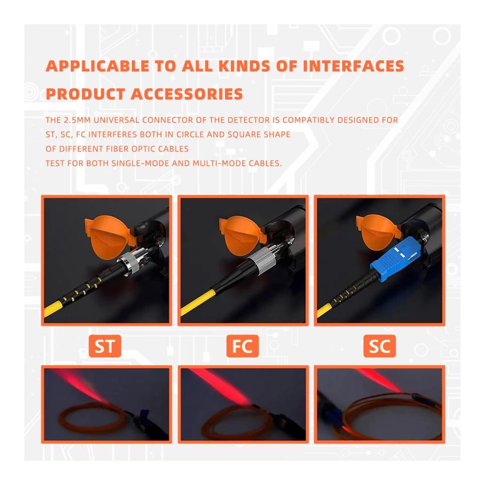 • Hochwertige Leiterplatte: Bessere Produktrohstoffe für eine stabilere Produktleistung. Hochwertiger Chip identifiziert Fehler in Fasern mit einer Länge von bis zu 30 km für dieses visuelle Fehlersuchgerät