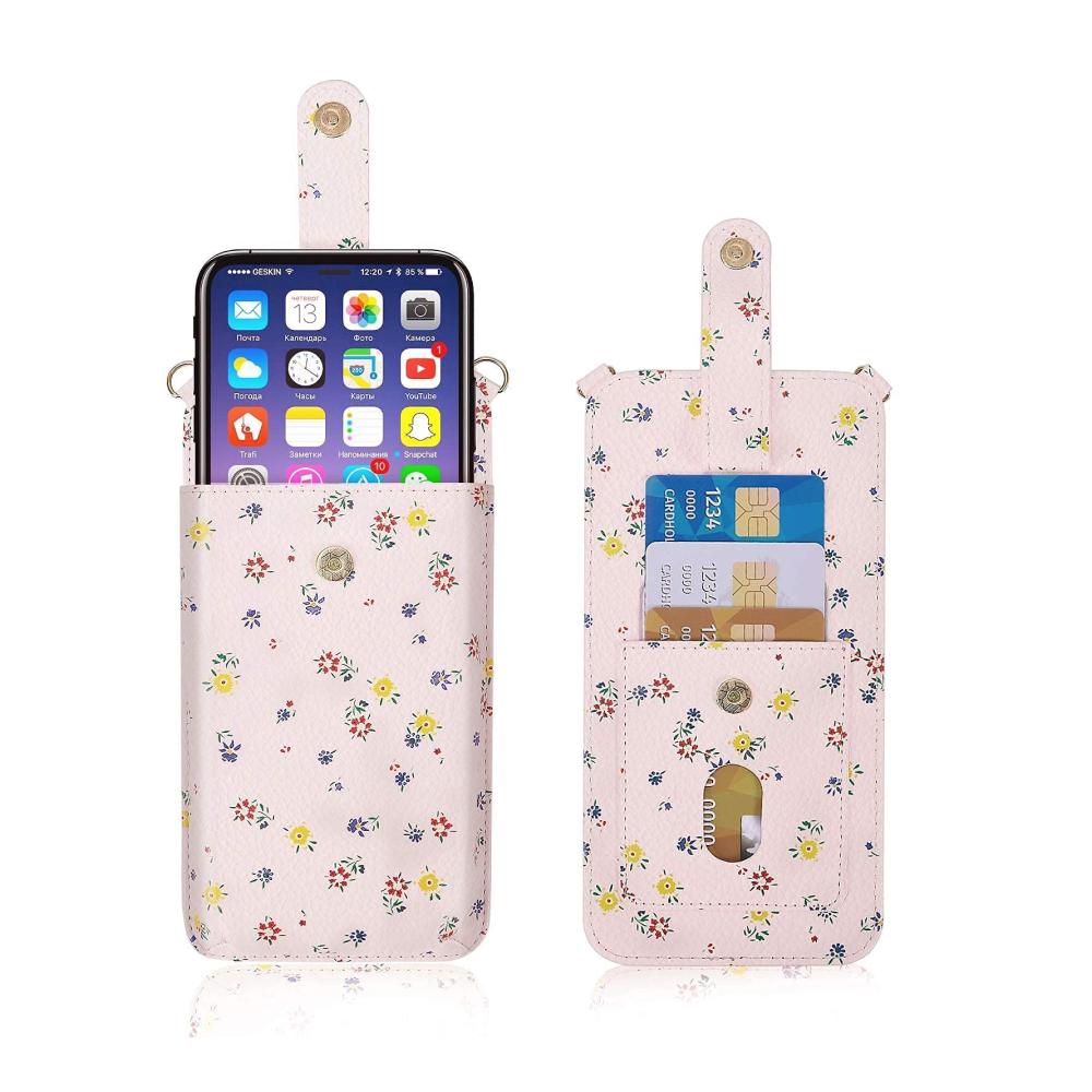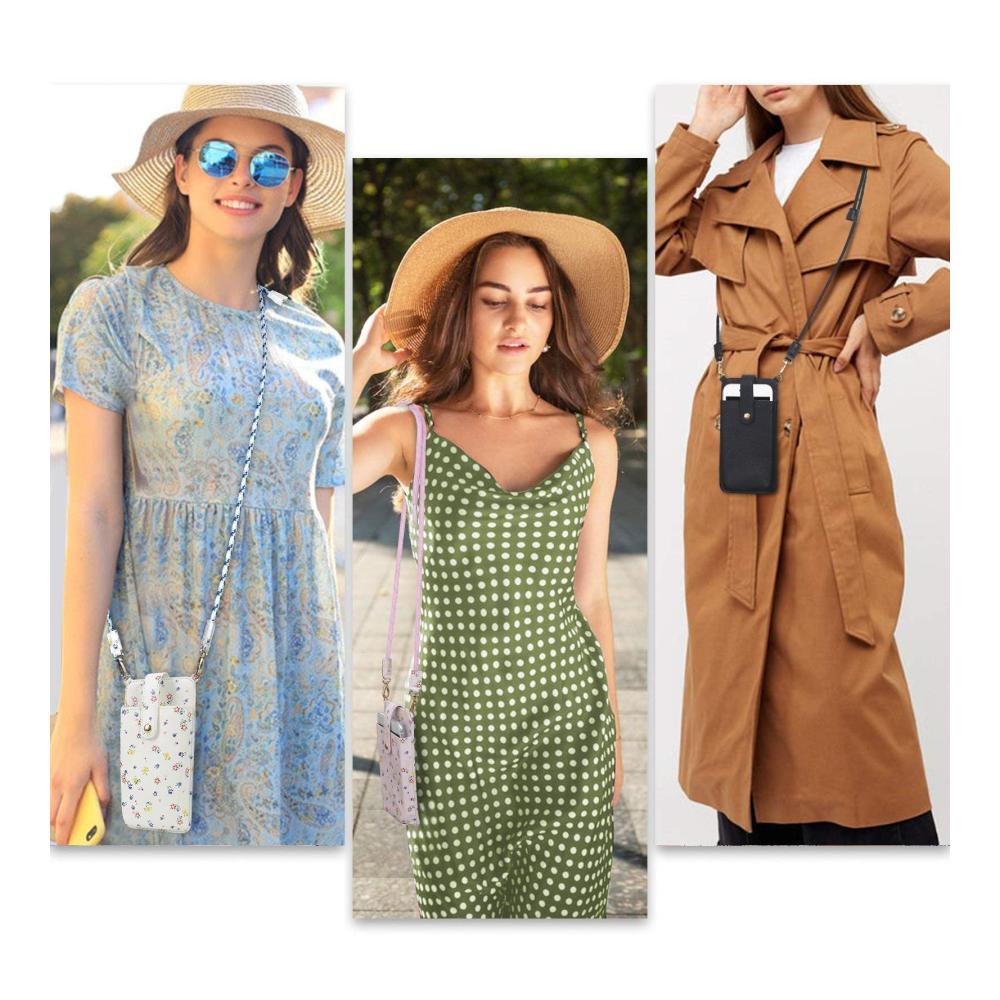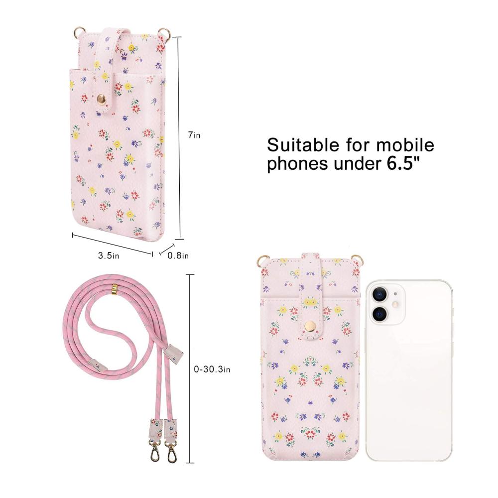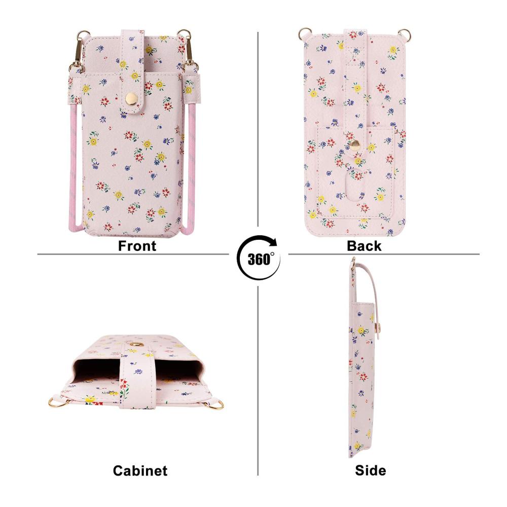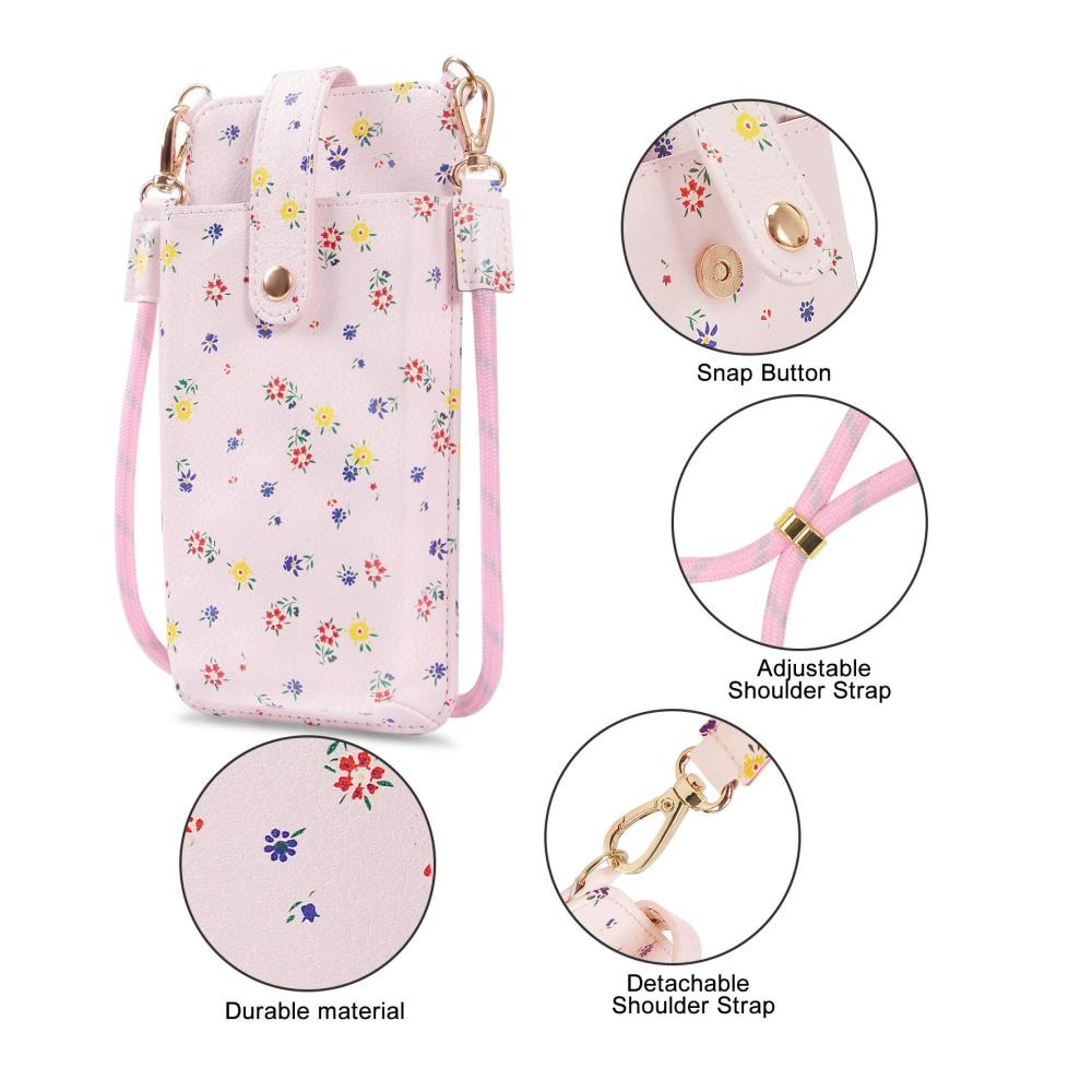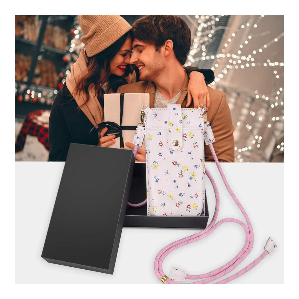 Das exklusive Blumenmuster in Hellviolett verleiht der Tasche eine jugendliche und lebhafte Note. Wählen Sie diese Umhängetasche für Reisen, Arbeit oder den täglichen Gebrauch. Die Größe passt perfekt für Handys bis 6,5 Zoll, mit einem praktischen Kartenfach auf der Rückseite.