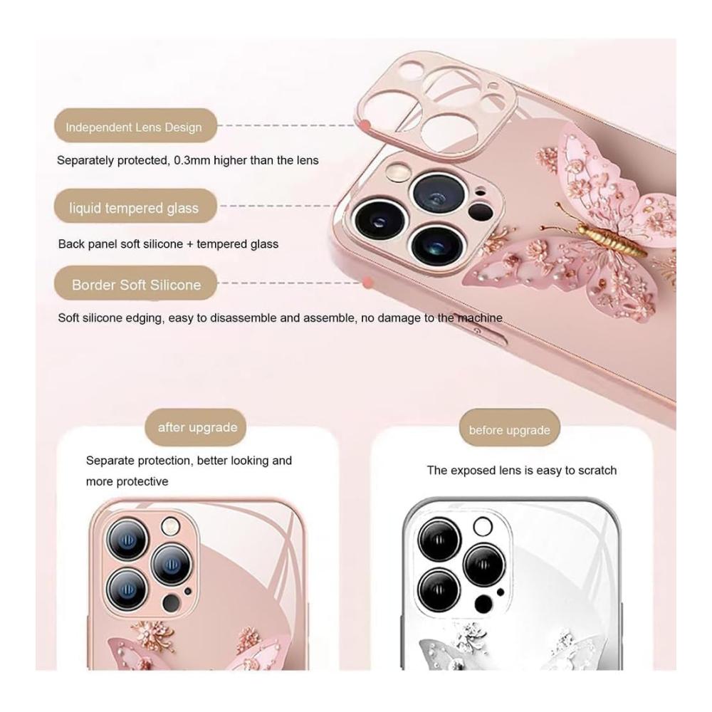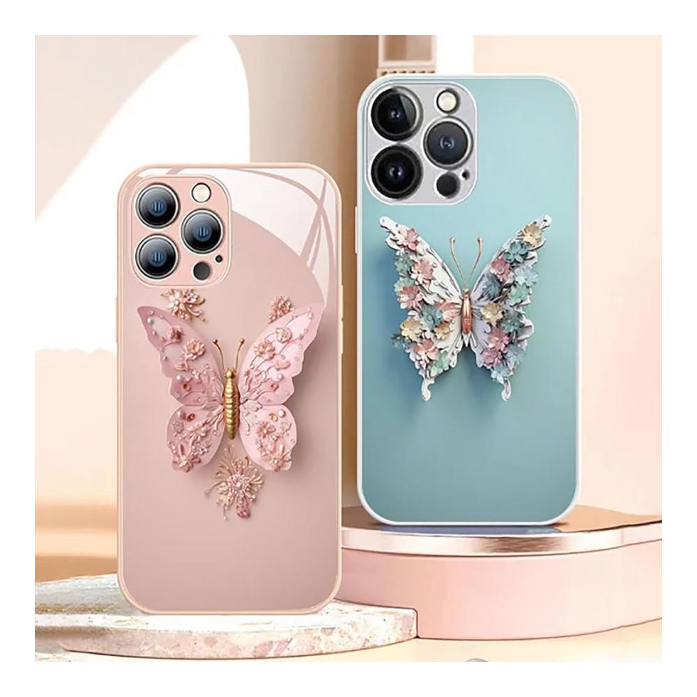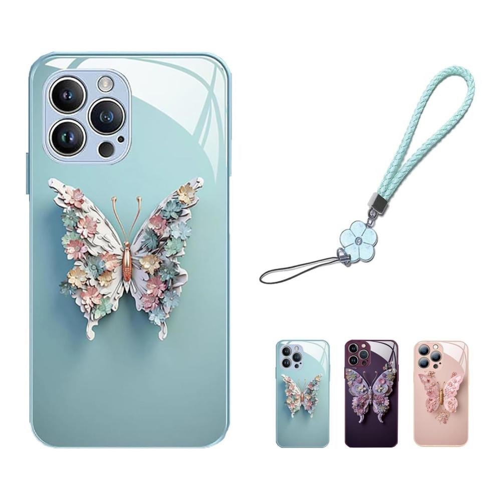 Entdecken Sie die Standard 3D-Glasabdeckung – Ihre ultimative Wahl für Stil und Schutz. Das Flachdesign mit bezauberndem Schmetterlings- und Blumenmuster verleiht Ihrem iPhone 14/13/12/11 Pro Max einen einzigartigen Charme.