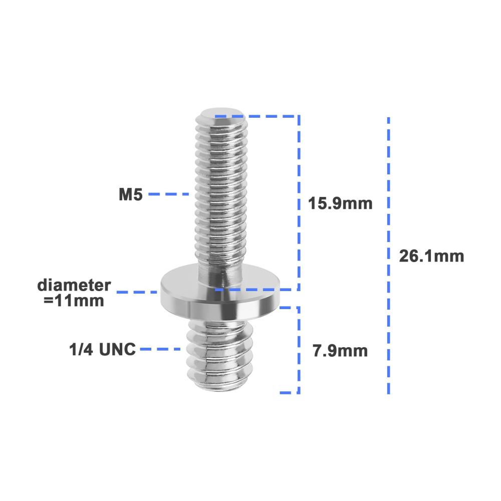 • Der 1/4-Stecker-auf-M5-Stecker-Schraubenadapter eignet sich für den Anschluss verschiedener 1/4-Schraubenlöcher, wie z. B. Kamera/Stativ/Einbeinstativ/Kugelkopf/Lichtstativ.
