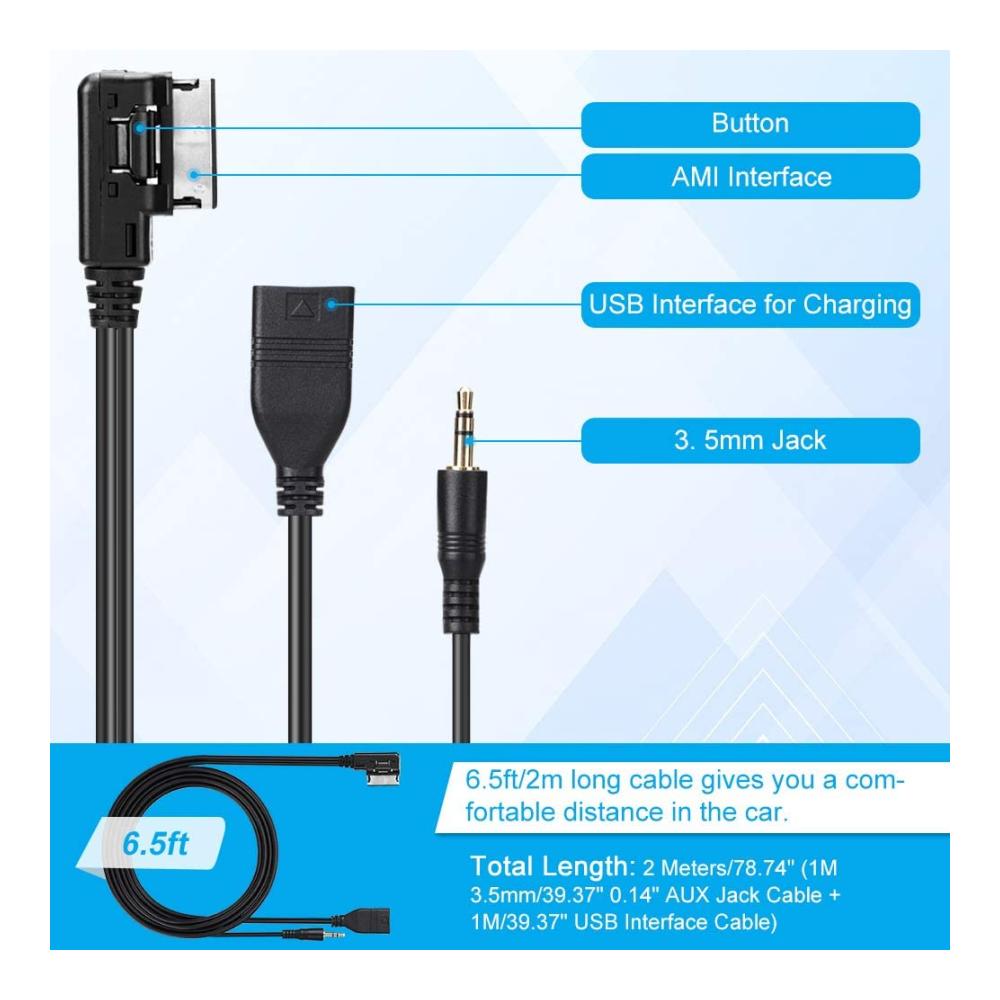 🚙【Léger et Portable】 La conception précise de l&39;interface AMI MMI assure une connexion sécurisée, pas besoin de se soucier de la sécurité. Ce câble de chargeur auxiliaire est très compact et léger, portable à transporter. Longueur totale: 2 mètres (câble d&39;interface USB 1 m 3,5 mm 1 m câble d&39;interface USB 1 m). Une longueur suffisante vous donne la liberté de changer de téléphone portable ou de chansons MP3.