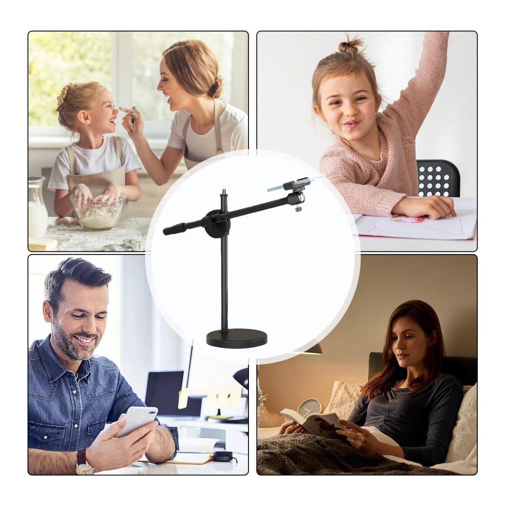 ✳Flexible Positionierung: Mit dieser Overhead-Telefonhalterung können Sie den Winkel und die Höhe Ihres Telefons einfach an Ihre Bedürfnisse anpassen, egal ob Sie filmen, Videoanrufe tätigen oder Inhalte ansehen. ✳Verbesserte Beleuchtung: Mit einem 26-cm-Ringfülllicht können Sie die Lichter einfach anpassen, um Ihre Foto- oder Live-Streaming-Effekte zu verbessern. Wählen Sie je nach Bedarf aus 3 Farbmodi und 9 Helligkeitsstufen. ✳Verdickte Basis: Die Basis des Desktop-Telefonständers ist verdickt und beschwert, um Stabilität zu gewährleisten und ermöglicht außerdem die Auswahl verschiedener Winkel, was ihn zu einem multifunktionalen Werkzeug macht. ✳Erhöhtes Filmerlebnis: Mit unserer Overhead-Telefonhalterung können Sie mithilfe einer Dual-Kamera-Handyhalterung aus verschiedenen Winkeln fotografieren. Erfassen Sie vielfältige Inhalte und verbessern Sie die Videoqualität – alles auf einmal. ✳Breite Anwendung: Diese vielseitige Overhead-Telefonhalterung kann auf jeden Winkel und jede Höhe eingestellt werden und eignet sich daher perfekt für den Online-Unterricht. Dank der universellen Kompatibilität und anpassbaren Einstellungen können Sie immer die perfekte Aufnahme machen, die Ihr Publikum fesselt. Entdecken Sie die vielseitigen Möglichkeiten unserer hochmodernen Gelenkarm-Überkopfkamerahalterung, ideal für Stilllebenfotografie und Live-Streaming.