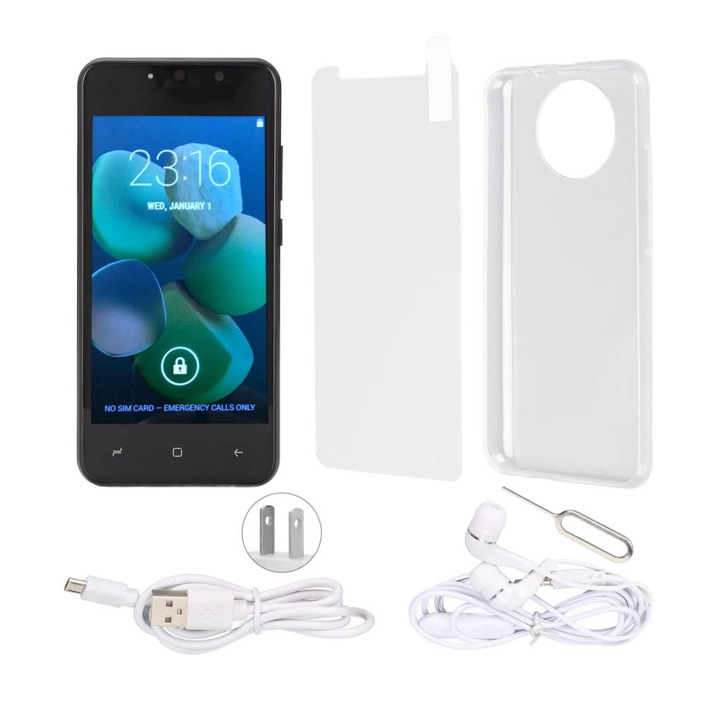 Im Lieferumfang enthalten sind ein Smartphone, Englischunterricht, Ladegerät, USB-Kabel, kabelgebundenes Headset, Handy-Schutzfolie, transparente Schutzhülle und ein Metall-Kartenleser.