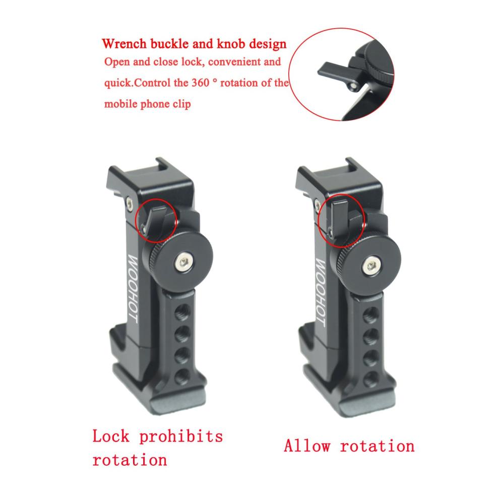 • Handy-Stativhalterung aus Metall mit Kaltschuh für 360-Grad-Aufnahmen. &34;L&34;-förmige Handyhalterung, einzigartiges 360-Grad-Dreh-Design, ermöglicht es Ihnen, schnell in horizontalen und vertikalen Formen zu wechseln und andere verschiedene Aufnahmewinkel können nach Belieben eingestellt werden.