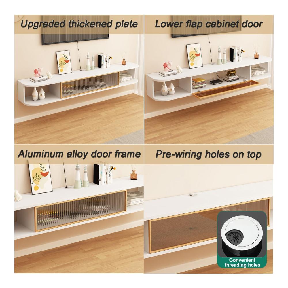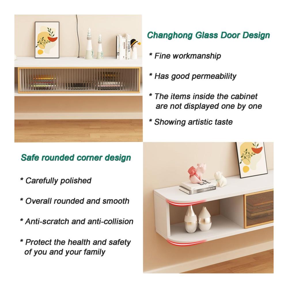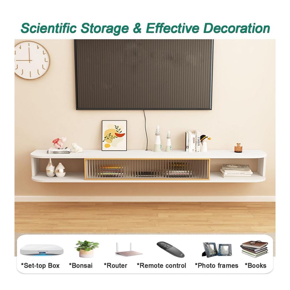 【Wandmontage Design】Nutzen Sie den Platz an der Wand voll aus, Sie können die Installationshöhe des TV-Schranks nach Ihren Bedürfnissen wählen; offener Boden, leicht zu reinigen und kein Schmutz zu verstecken.