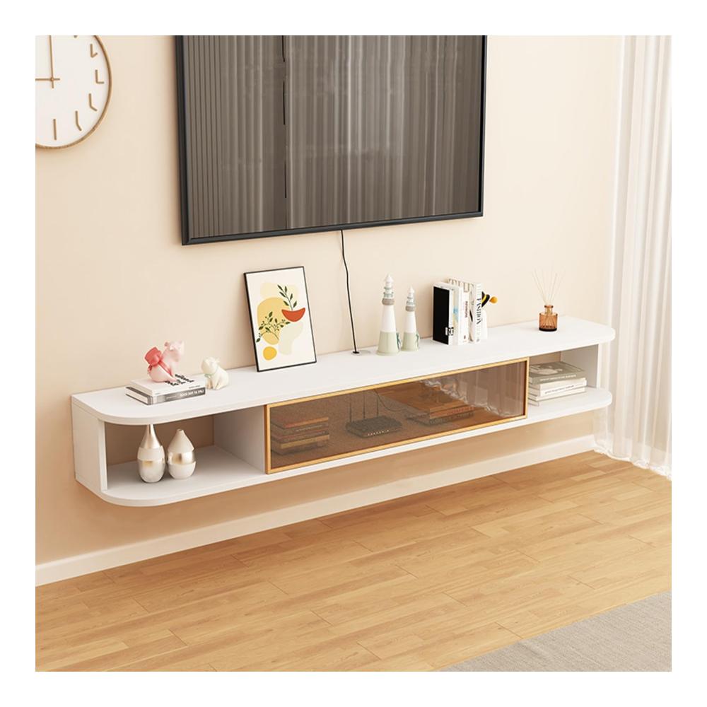 Entdecken Sie den Dawselod Wandmontierten TV-Ständer – ein modernes, schwebendes Unterhaltungszentrum für Ihr Wohn- oder Schlafzimmer. Mit einer Größe von 120CM und in der Farbe B1 bietet dieser TV-Schrank ein stilvolles und platzsparendes Design. Die Installation ist flexibel und einfach, dank der verbesserten verdickten Platte und des offenen Lagerungskonzepts. Genießen Sie die subtilen Details wie die reservierten Einfädeln Löcher und die elegante lange Regenbogen Glastür. Der Aluminium-Legierung Türrahmen und die abgerundeten Ecken verleihen diesem TV-Schrank Stabilität und Ästhetik. Machen Sie Ihr Wohnzimmer zum Mittelpunkt mit diesem modernen TV-Schrank