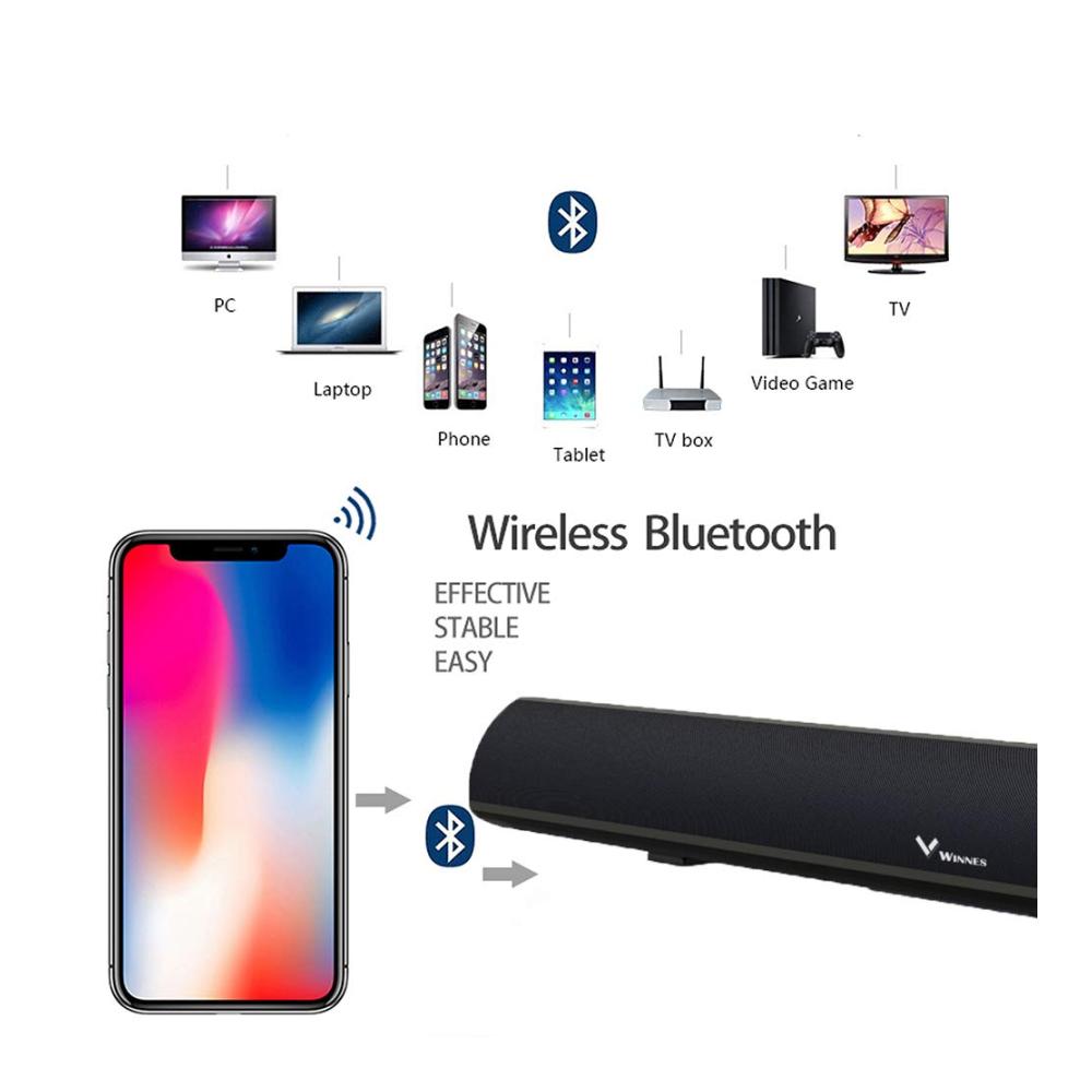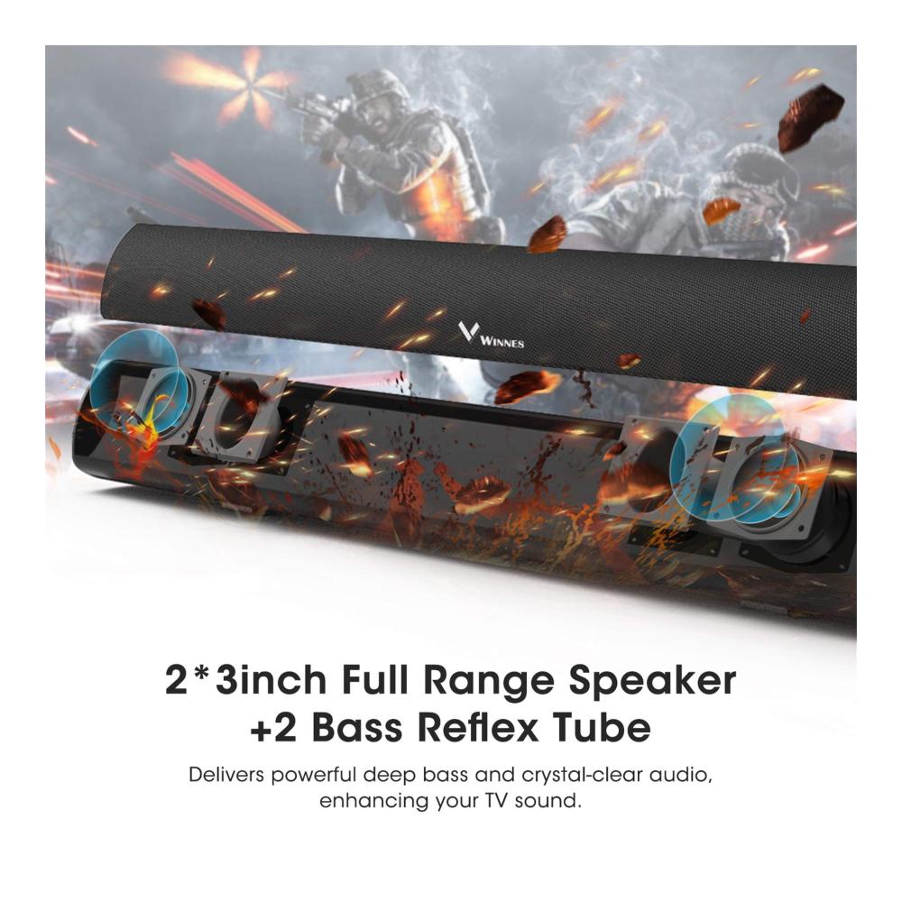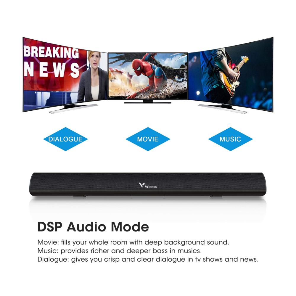 Winnes Soundbar für TV Geräte, TV Soundbar, Bluetooth 5.0, Einstellbarer Bass, DSP-Technologie(mit RCA, USB, Optisch, AUX, Bluetooth)