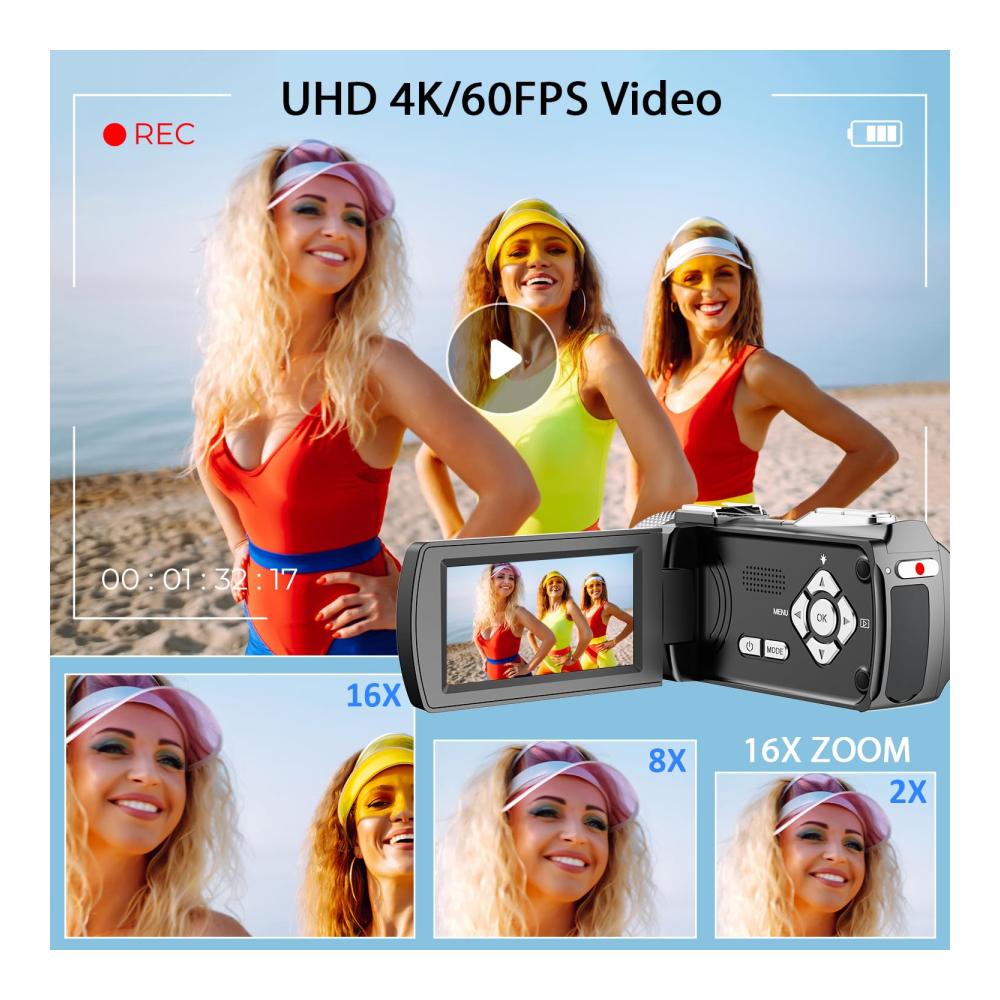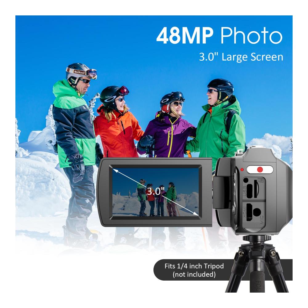 • 【UHD 4K-Video und 48-MP-Foto】 Diese 4K-Videokamera zeichnet UHD-Videoclips mit echten 3840 x 2160 4K und 60 Bildern pro Sekunde auf. Machen Sie Ihre Videoaufnahmen scharf und flüssig. Außerdem werden Fotos mit bis zu 48 Megapixeln aufgenommen, wodurch mehr Details im Bild erfasst werden. Es unterstützt den 18-fachen Digitalzoom. Dank des großen 3,0-Zoll-IPS-Bildschirms können Sie das Bild klarer anzeigen. Der Flip-Screen kann um 270 Grad gedreht werden.
