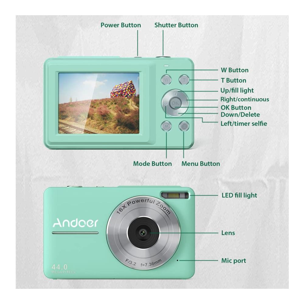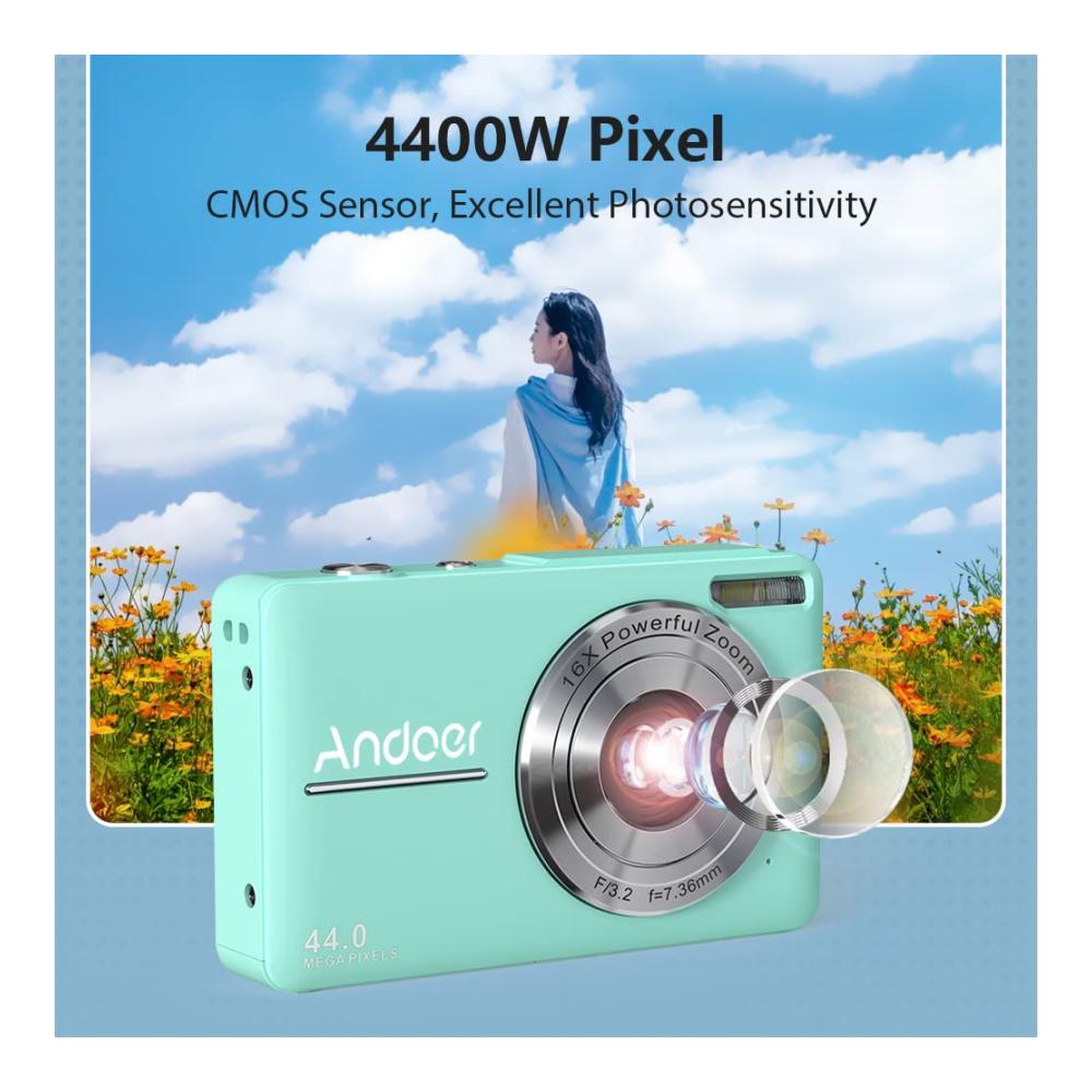 Die Andoer Digitalkamera ist ein vielseitiges Gerät, das sowohl hochauflösende Fotos als auch Videos in beeindruckender Qualität ermöglicht. Mit einer Auflösung von bis zu 44 MP und einem 16-fachen Digitalzoom können Sie jedes Detail einfangen, egal ob nah oder fern. Dank der Anti-Shake-Funktion sind Ihre Aufnahmen immer stabil und klar.