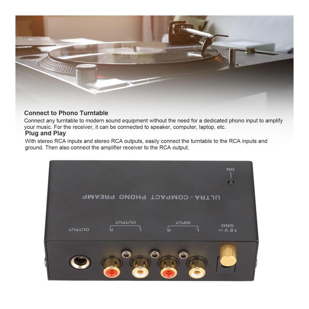 Verwendung: Plug-and-Play. Spezifikation: Elementtyp: Phono-Plattenspieler-Vorverstärker Material: Metall Modell: PP400 Farbe: Schwarz Anwendungsbereich: Plattenspieler Steckerspannung: 100-240 V Paketliste: 1 x Phono-Plattenspieler-Vorverstärker 1 x DC 12 V Netzteil 1 x Handbuch