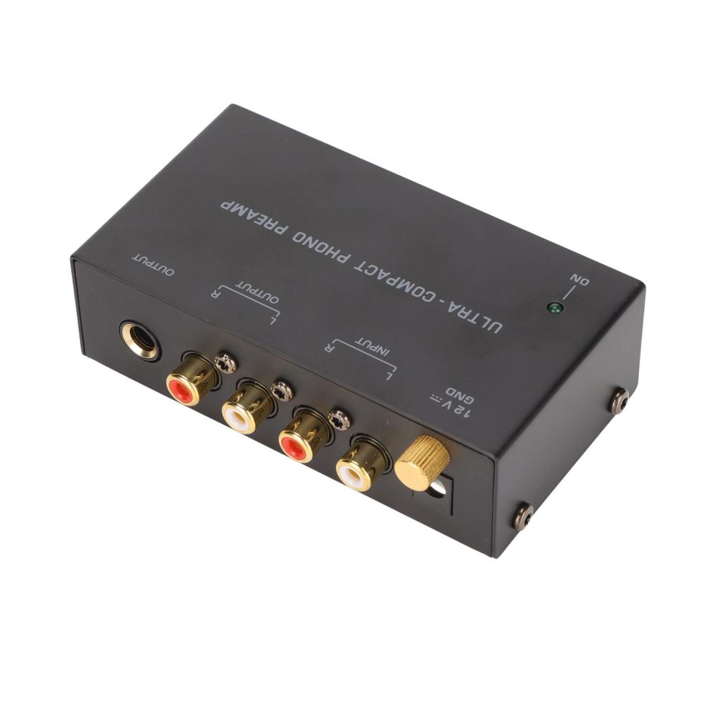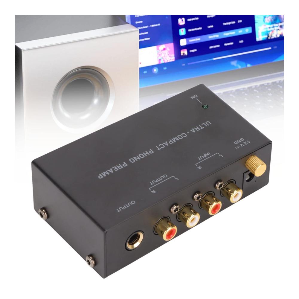 Der **PP400 Phono Plattenspieler Vorverstärker** von Annadue ist ein kompakter und leistungsstarker Vorverstärker für Plattenspieler. Mit seiner Plug-and-Play-Funktionalität ist er einfach zu bedienen und bietet eine unabhängige Knopfsteuerung für optimale Klangeinstellungen. Der Vorverstärker verfügt über RCA-Eingangs- und Ausgangsanschlüsse für eine einfache Integration in Ihre Audioanlage. Mit einer Steckerspannung von 100-240 V ist er vielseitig einsetzbar und wird mit einem DC 12 V Netzteil geliefert. Das Gehäuse besteht aus hochwertigem Metall und das kompakte Design macht ihn ideal für jeden Plattenspieler-Liebhaber.