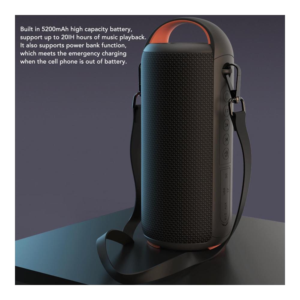 Spezifikation:Artikeltyp: Bluetooth-LautsprecherMaterial: ABS, wasserdichtes NetzProduktgröße: ca. 210 x 85 x 85 mm / 8,3 x 3,3 x 3,3 ZollProduktbatterie: 5200 mAh 3,7 V Lithiumbatterie (wird mit eingebauter Batterie geliefert)Betriebsspannung: DC 5 V 1 AFrequenzgang: 100 Hz bis 18 kHzNennleistung: 20 WTrennungsgrad: ≥90 dBSNR: ≥75 dBFunktion: Freisprechen, Bluetooth, Speicherkarte, U-Disk und AUX-TonwiedergabeBluetooth-Empfangsentfernung : 15MWasserdichtigkeitsgrad: IPX6Paketliste:1 x Bluetooth-Lautsprecher1 x Soundkabel1 x Ladekabel1 x BedienungsanleitungHinweis:Wird ohne Speicherkapazität geliefert