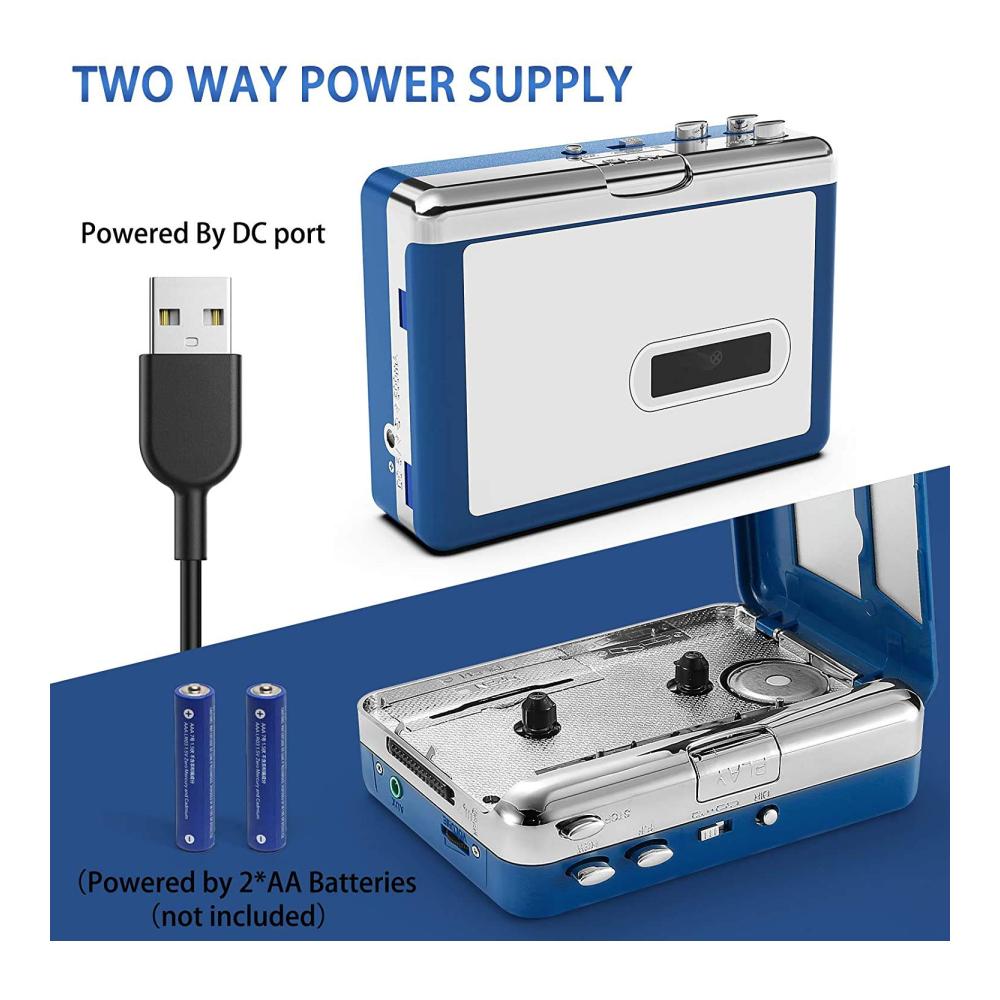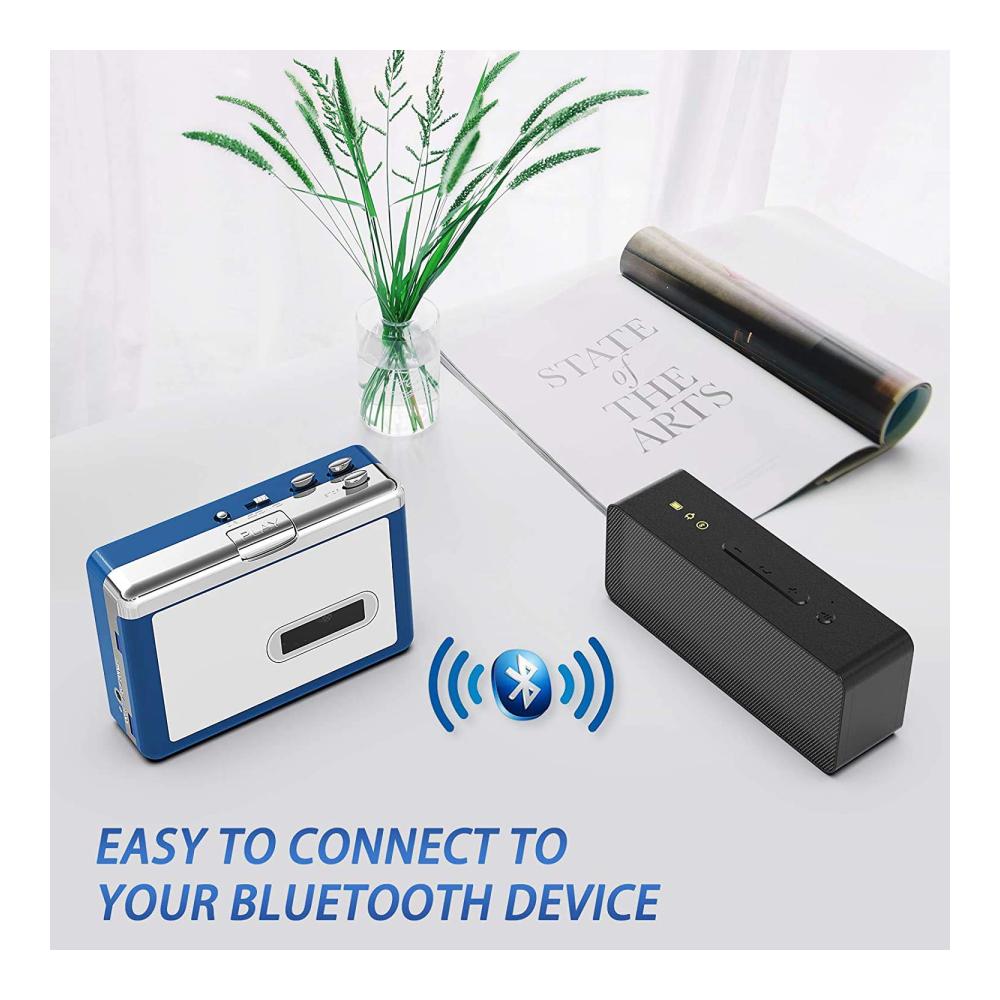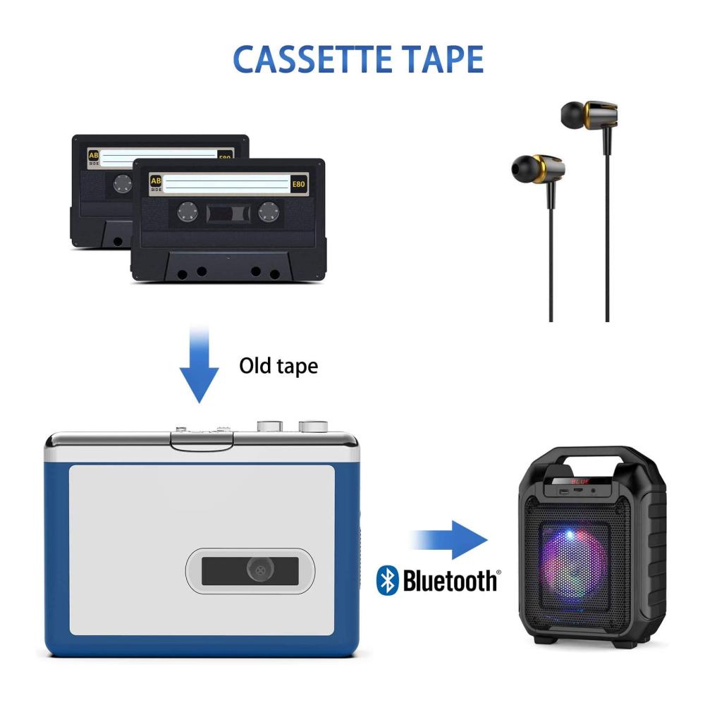 Audio-Eingang: Kassette, Audioausgang: 3,5 mm Kopfhöreranschluss, Bluetooth-Sender. Bluetooth Version: 4,2. Effektive Entfernung: ca. 10 m. Stromversorgung: 2 x AA Batterien oder USB Netzteil (5V DC Adapter)