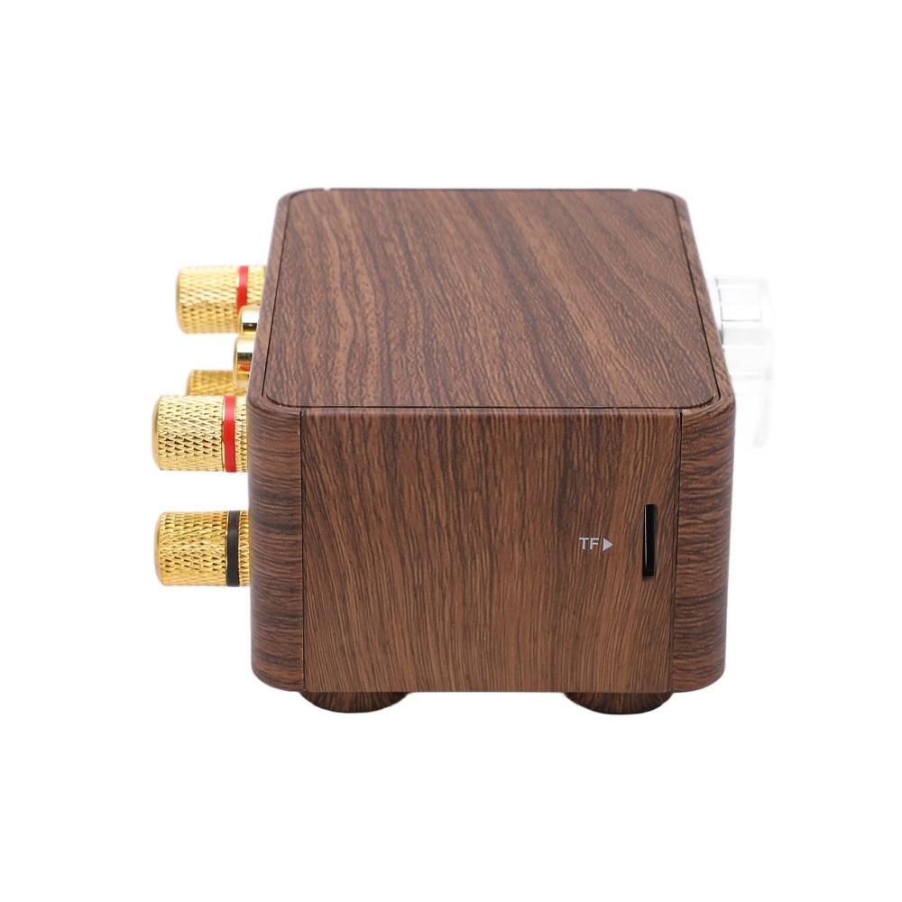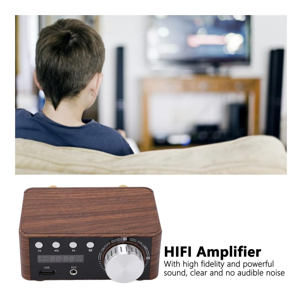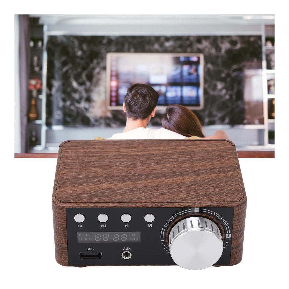 Unser Mini-Bluetooth-5.0-Verstärker ist ein leistungsstarker Stereo-Digital-Audioverstärker mit USB-Eingang und kabellosem Audio-Receiver. Er unterstützt U-Disk und kleine Speicherkarten. Mit dem TPA3116-Chip kann er eine maximale Leistung von 50W pro Kanal erreichen. Die tatsächliche Ausgangsleistung beträgt 30W. Der Verstärker bietet kraftvollen, klaren Klang ohne hörbares Rauschen, selbst bei maximaler Ausgangsleistung. Die modische Mahagoni-Farbschale verleiht ihm einen ästhetischen Touch. Perfekt als Geschenk. Hergestellt aus hochwertigen Materialien für Haltbarkeit und Stabilität. Bluetooth 5.0 ermöglicht eine zuverlässige drahtlose Verbindung auf bis zu 12 Metern Entfernung. Kompatibel mit Lautsprechern von 4Ω bis 16Ω. Das Paket enthält einen Spieler und ein Benutzerhandbuch.