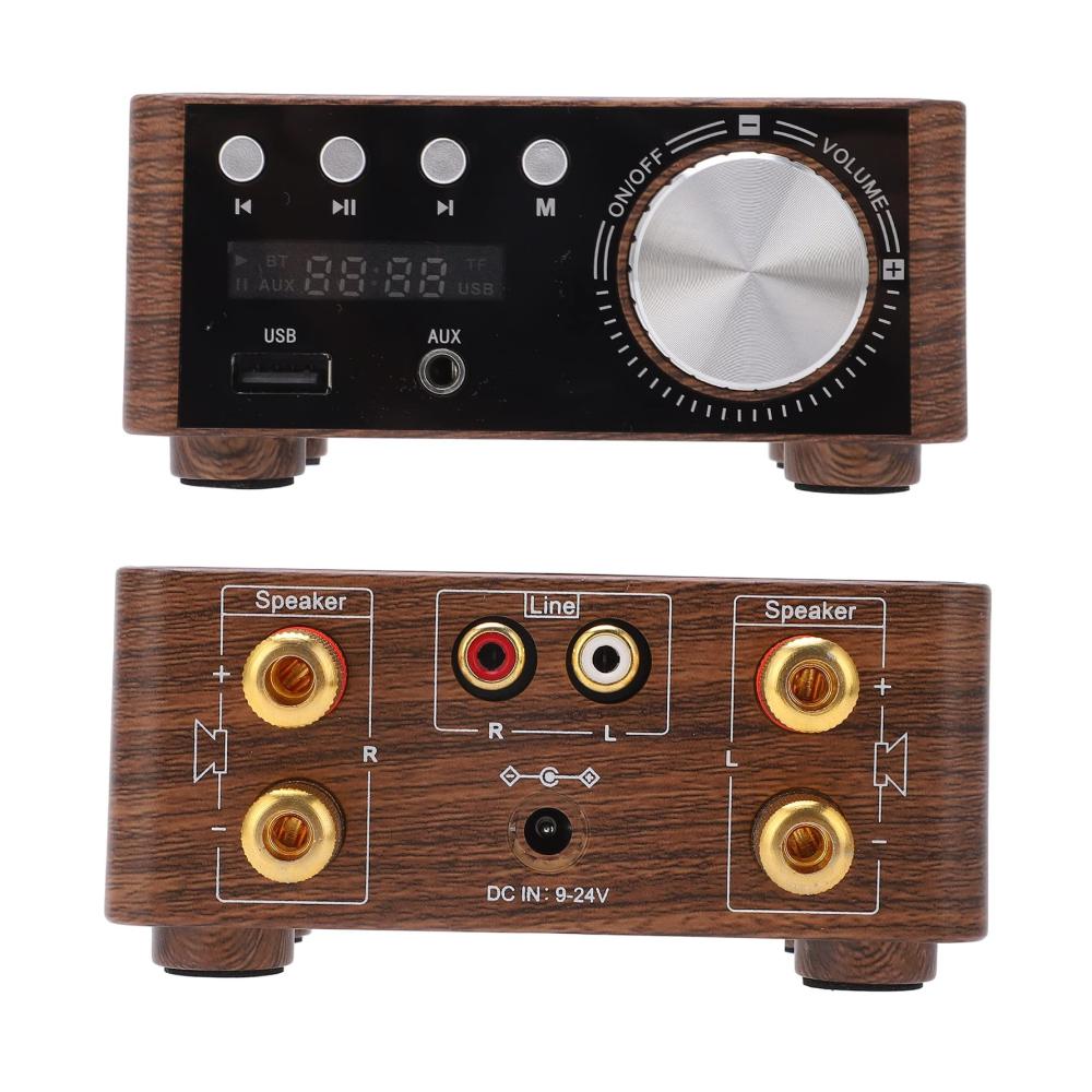 Feature:1. Mit dem Chip TPA3116 kann die maximale Leistung 50W, 5A bei 12V erreichen, und die tatsächliche Ausgangs leistung kann 30Werreichen 2. mit hoher Wiedergabe treue und kraftvollem Klang, klar und ohne hörbares Rauschen 3. Die optimierte Schaltung kann sicherstellen, dass auch bei maximaler Ausgangs leistung kein Rauschen erzeugt wird 4. Die Mahagoni-Farb schale ist modisch und stilvoll, schöner und atmos phä rischer, geeignet für Geschenke 5. Hochwertiges Material kann die Haltbarkeit und Stabilität des Produkts sicherstellen Spezifikation:Artikel typ: Digitaler Audio verstärker Material: ABS, Messing, Aluminium legierung Ausgangs leistung: 50W 50WLeistungs bedarf: DC9V-24VBluetooth-Abstand: Mindestens 12 Meter/39,4 ft (ca.)Bluetooth-Protokoll: Bluetooth 5.0Lautsprecher impedanz: 4Ω-16ΩPaket liste:1 x Spieler 1 x Benutzer handbuch